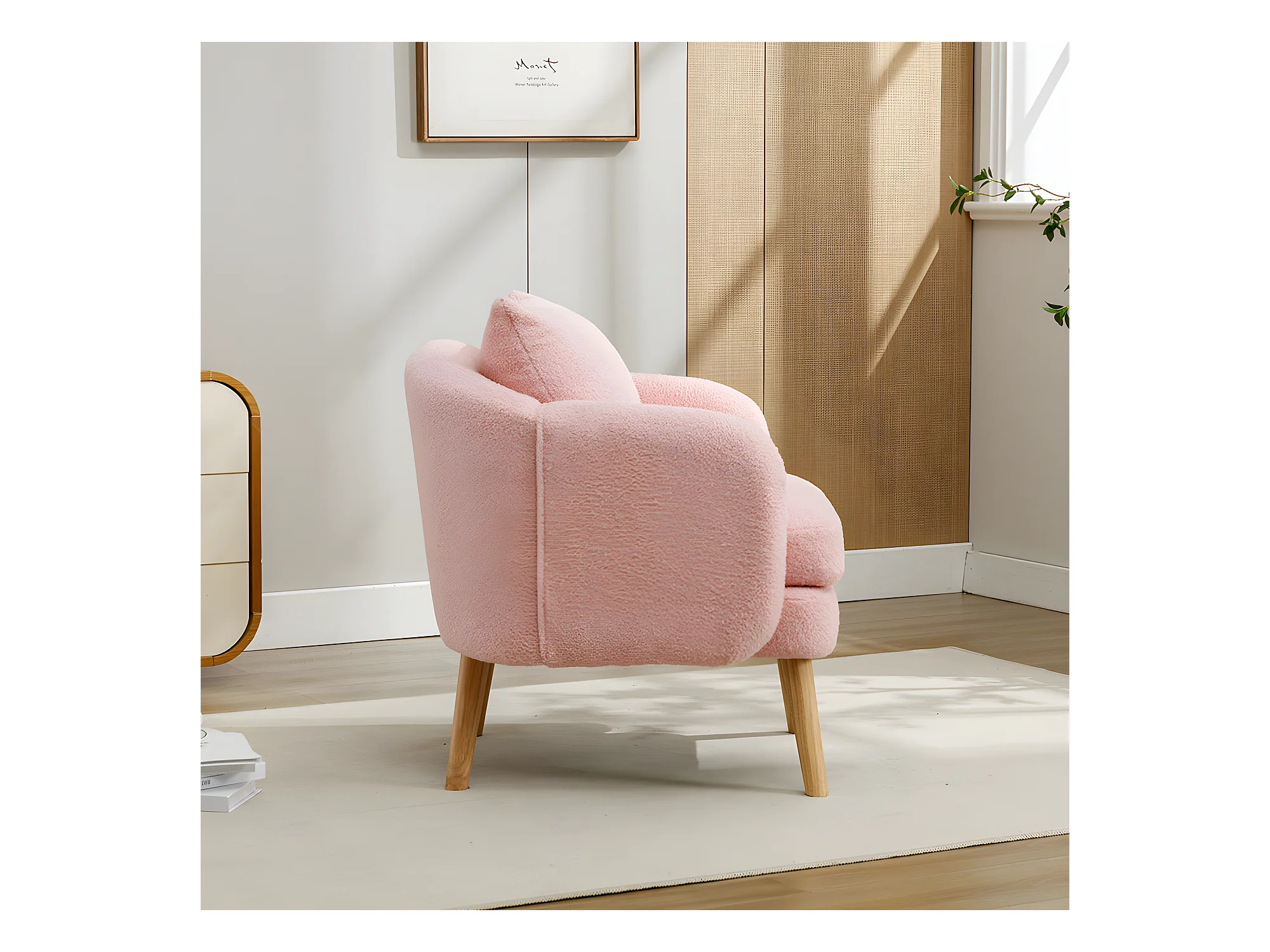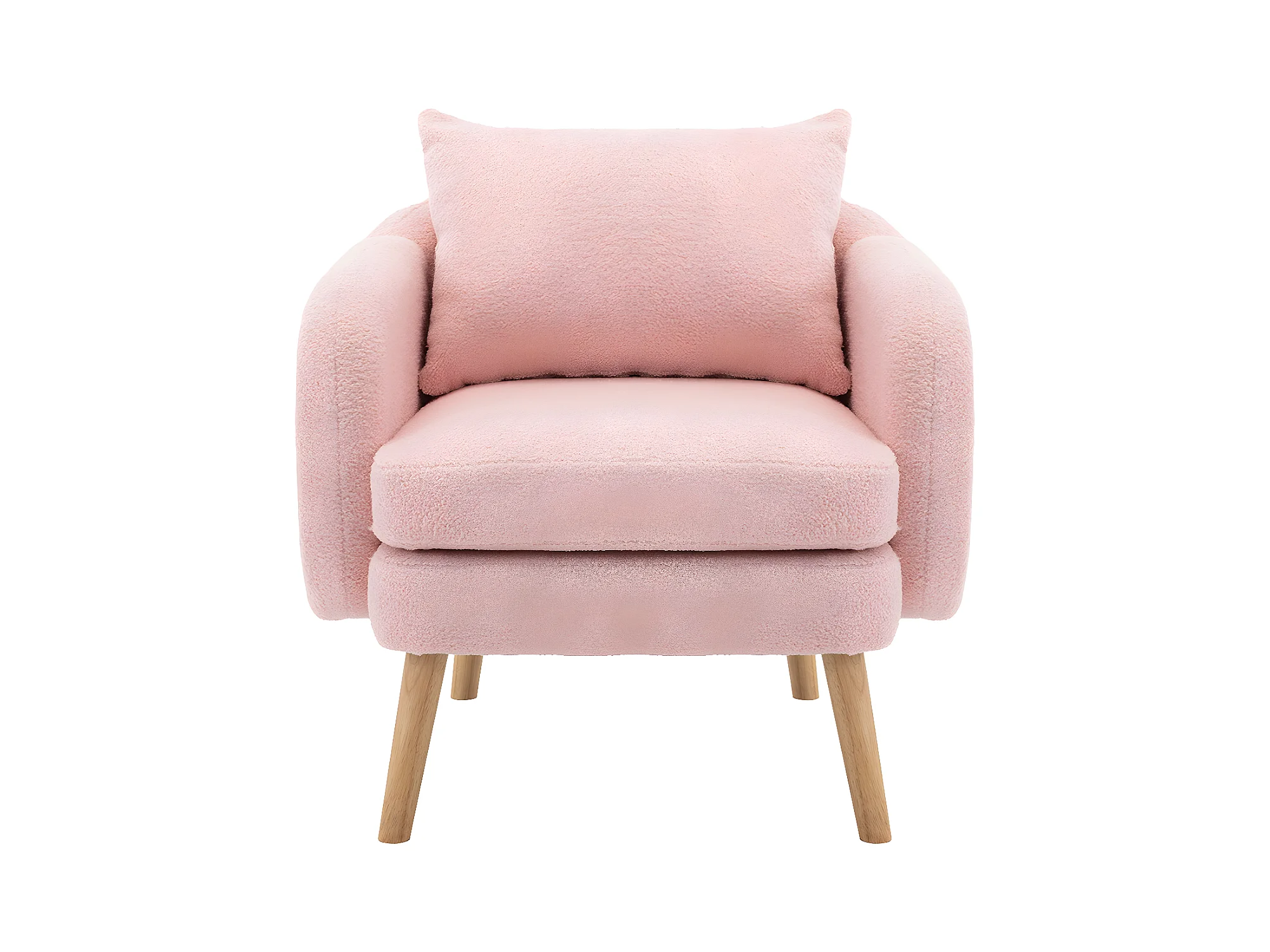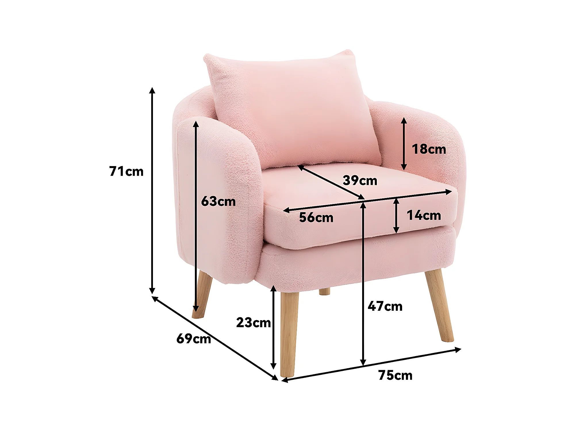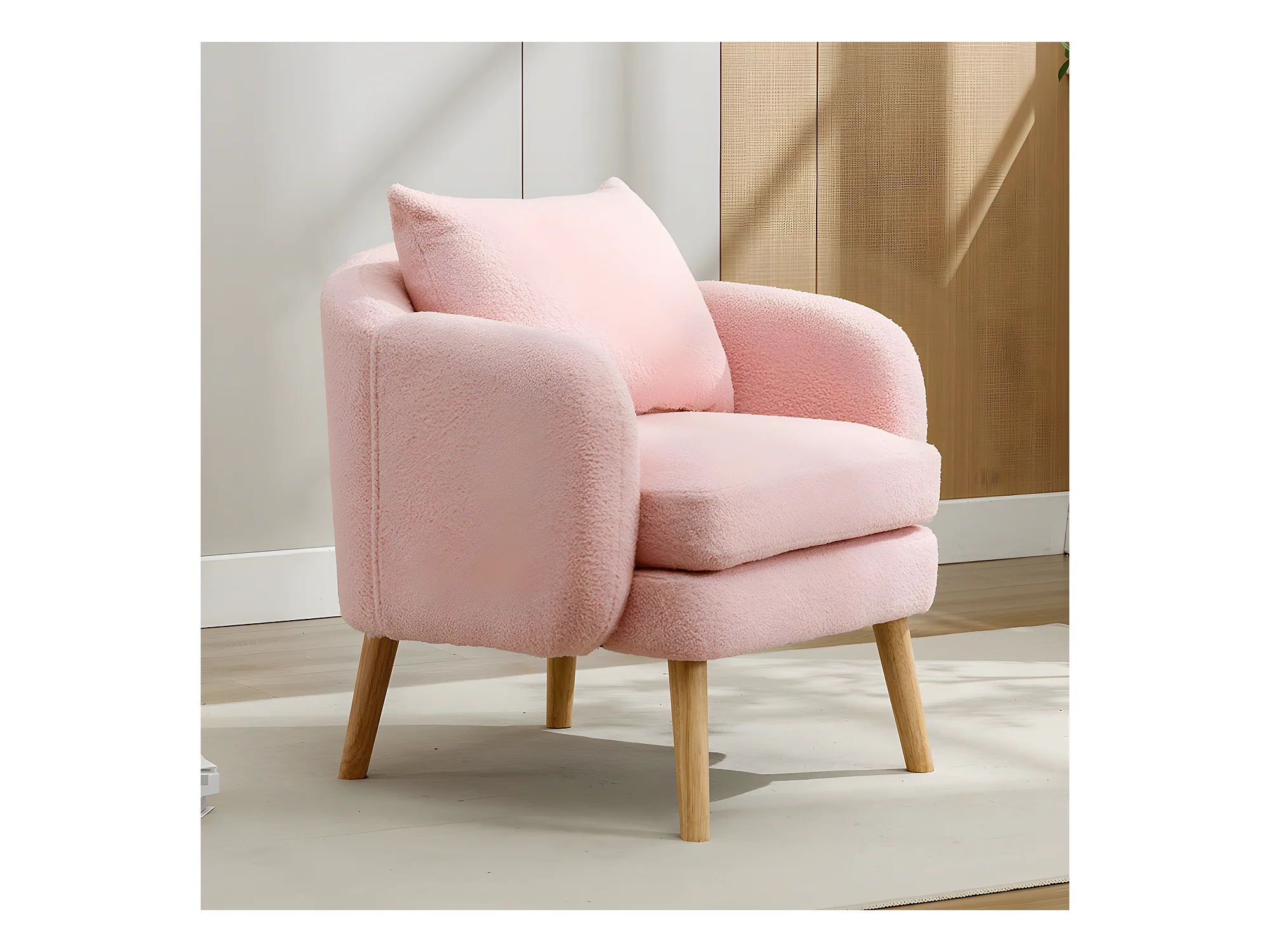 Fauteuil en tissu teddy avec coussin - pieds en bois massif - rose