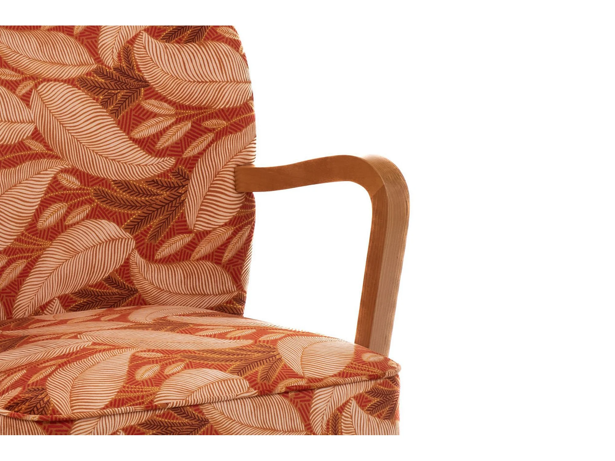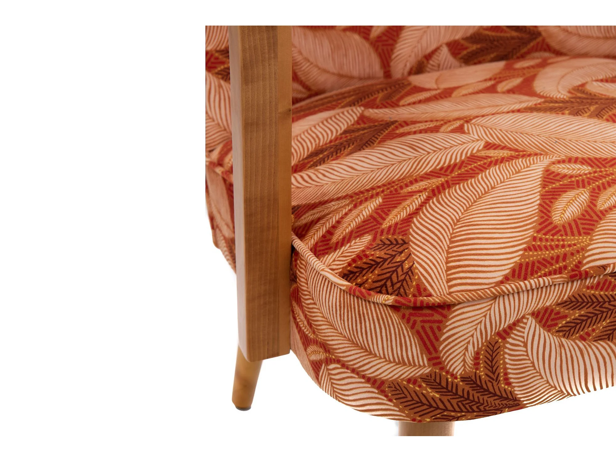 Fauteuil rétro en tissu feuillage et accoudoirs en bois - HONEY