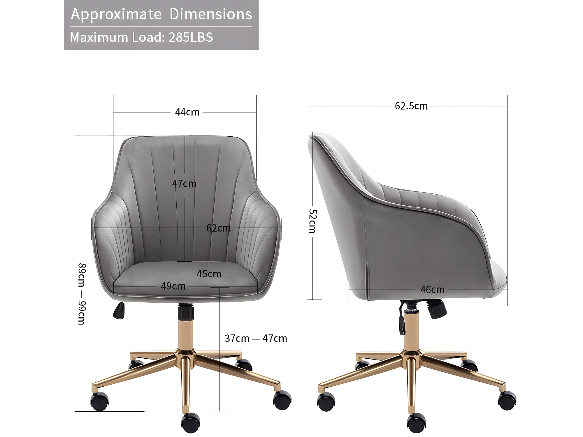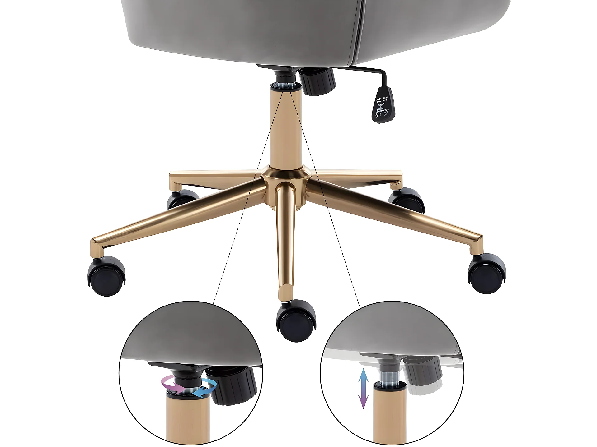 Fauteuil chaise de bureau pivotante design en velours gris structure métallique BUR09085