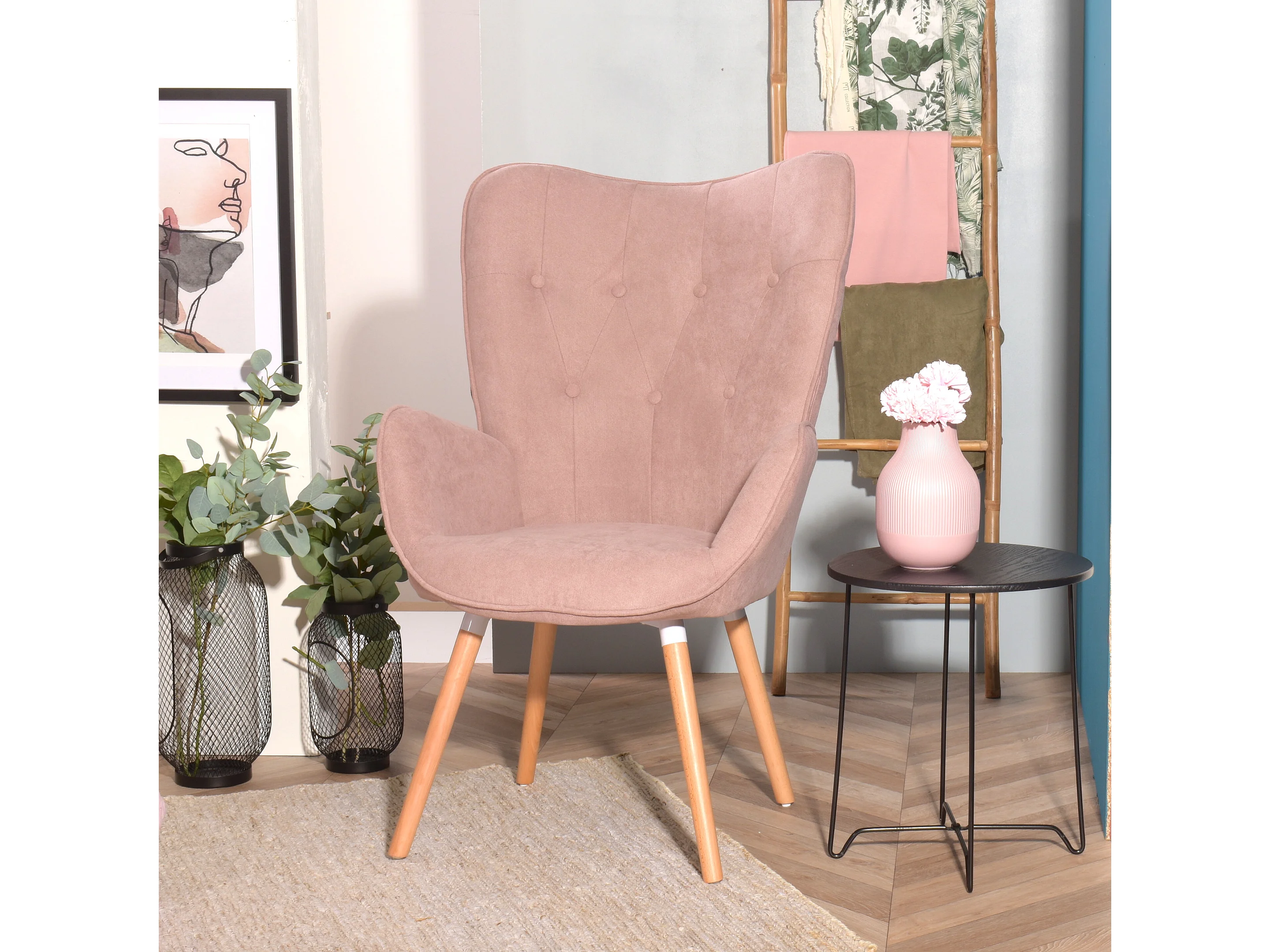 MEUBLES COSY Fauteuil Salon Scandinave Confortable Chaise de Coiffeuse Canapé de Loisirs pour Chambre Salle à Manger Bureau avec Assise Épais Accoudoirs Rembourés en Tissu Pieds Bois Massif, Rose