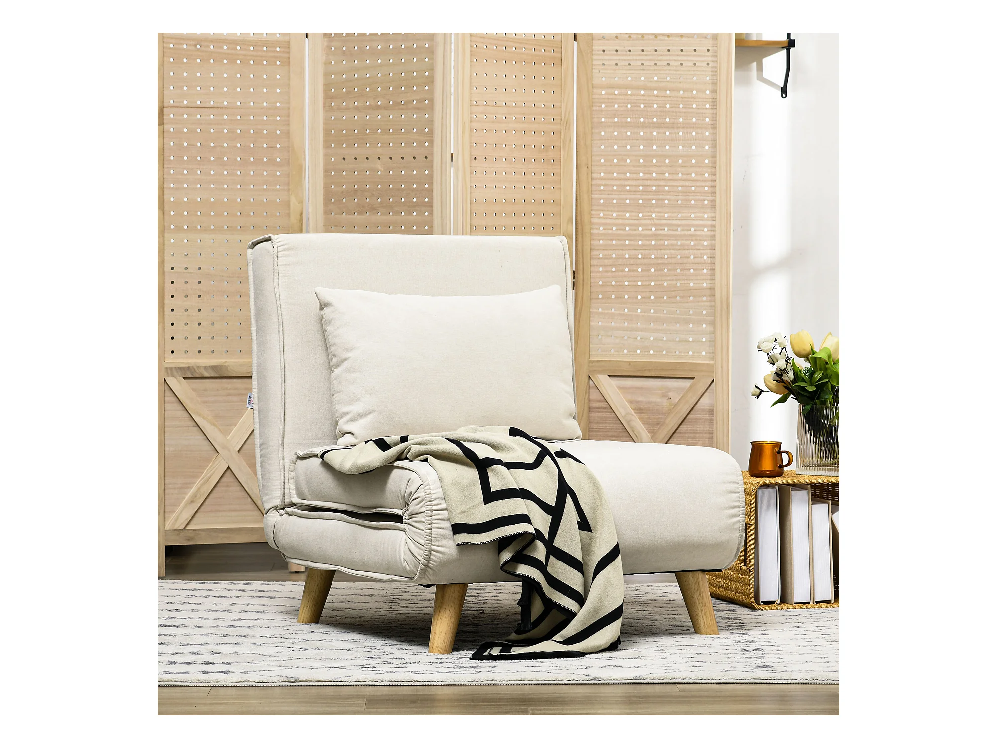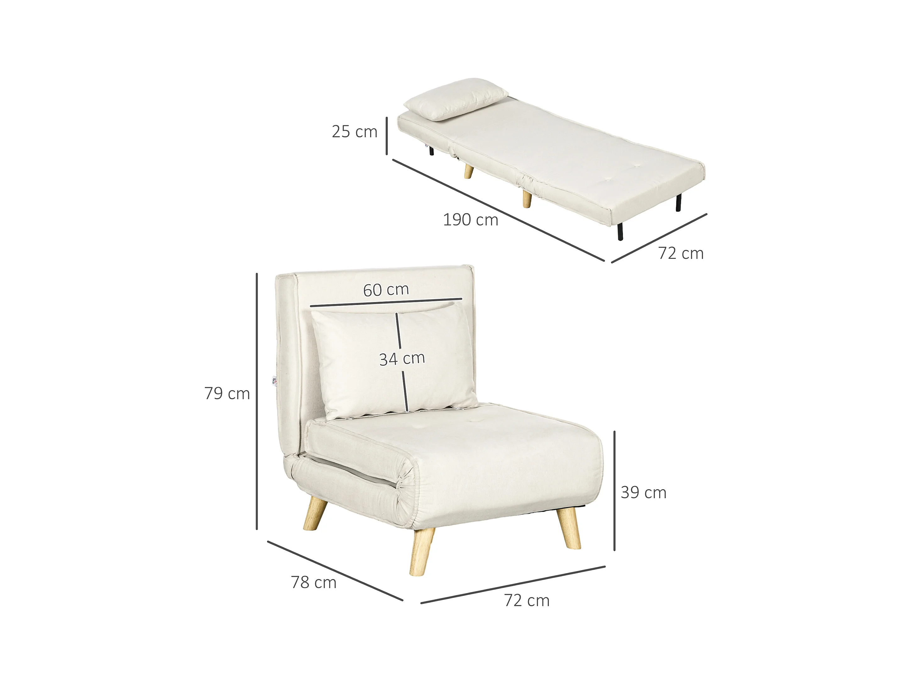 Fauteuil chauffeuse canapé-lit convertible 1 place - coussin inclus - style scandinave tissu beige clair