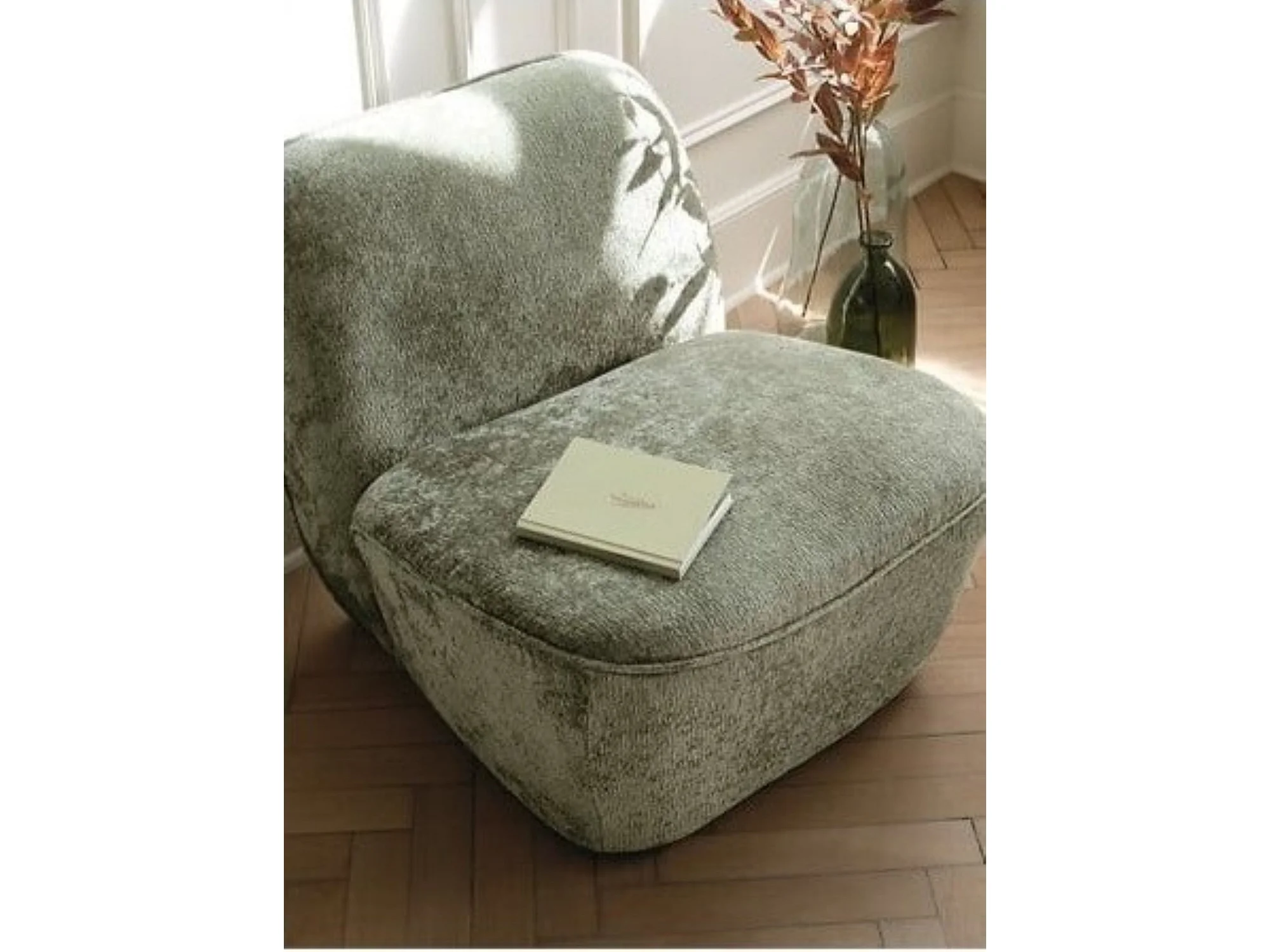 Fauteuil chauffeuse en tissu chenille de couleur verte - Longueur 81 x Profondeur 73 x Hauteur 71 cm