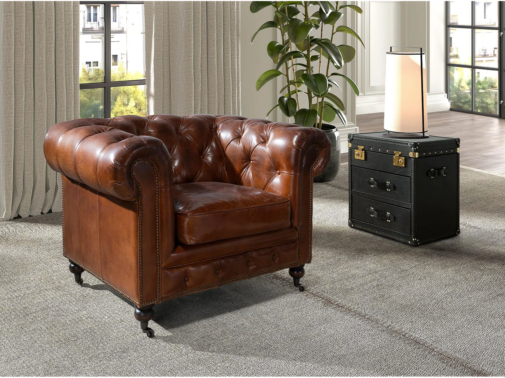 Fauteuil Chester en cuir brun cognac 5167 ANGEL CERDA