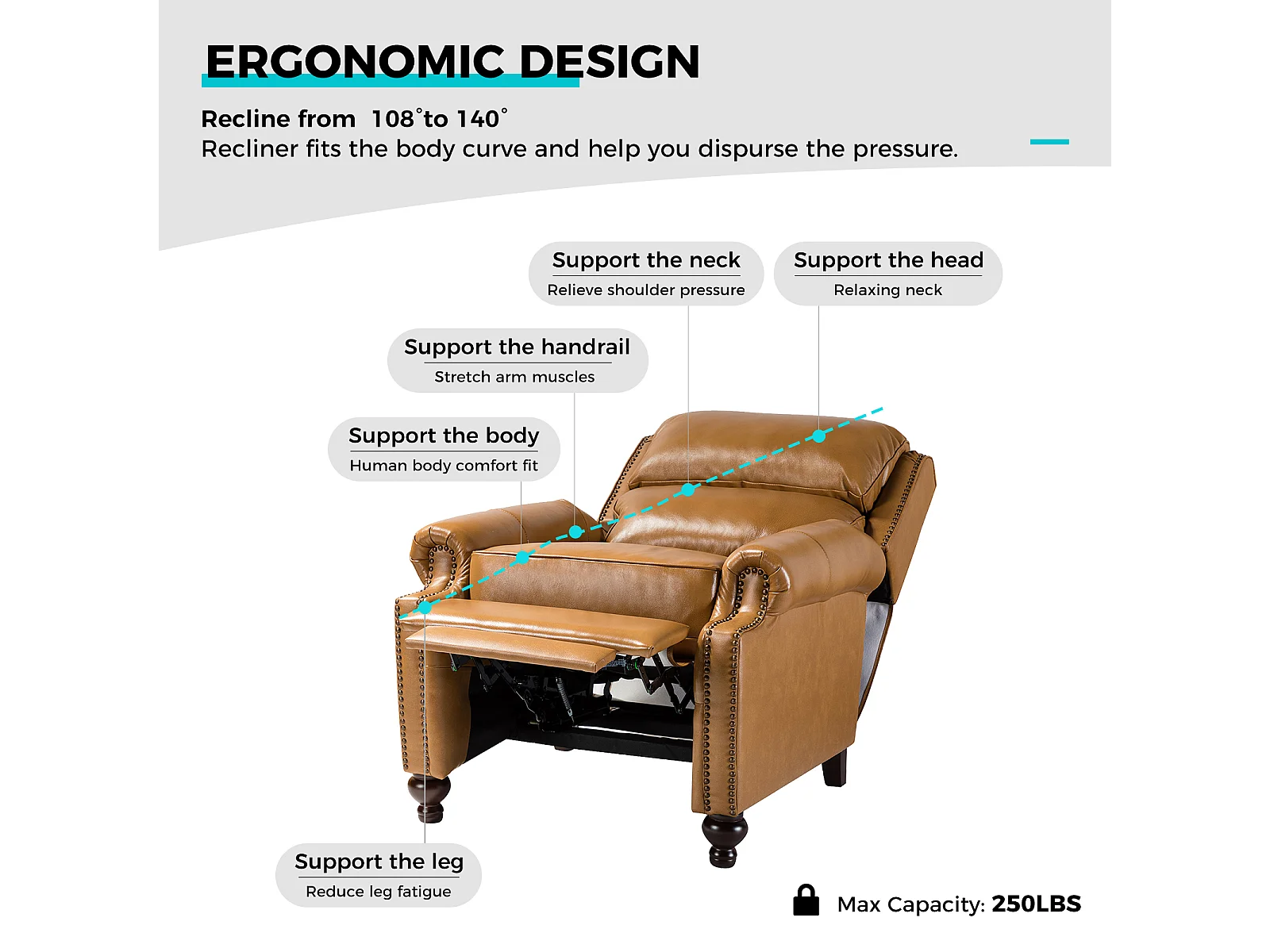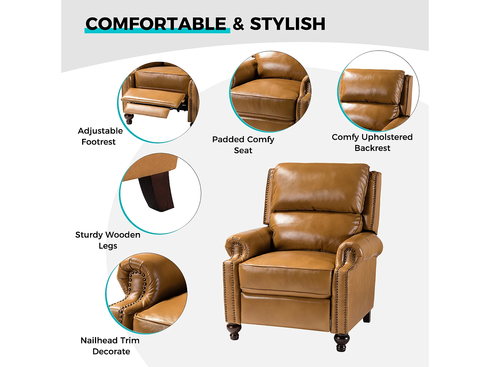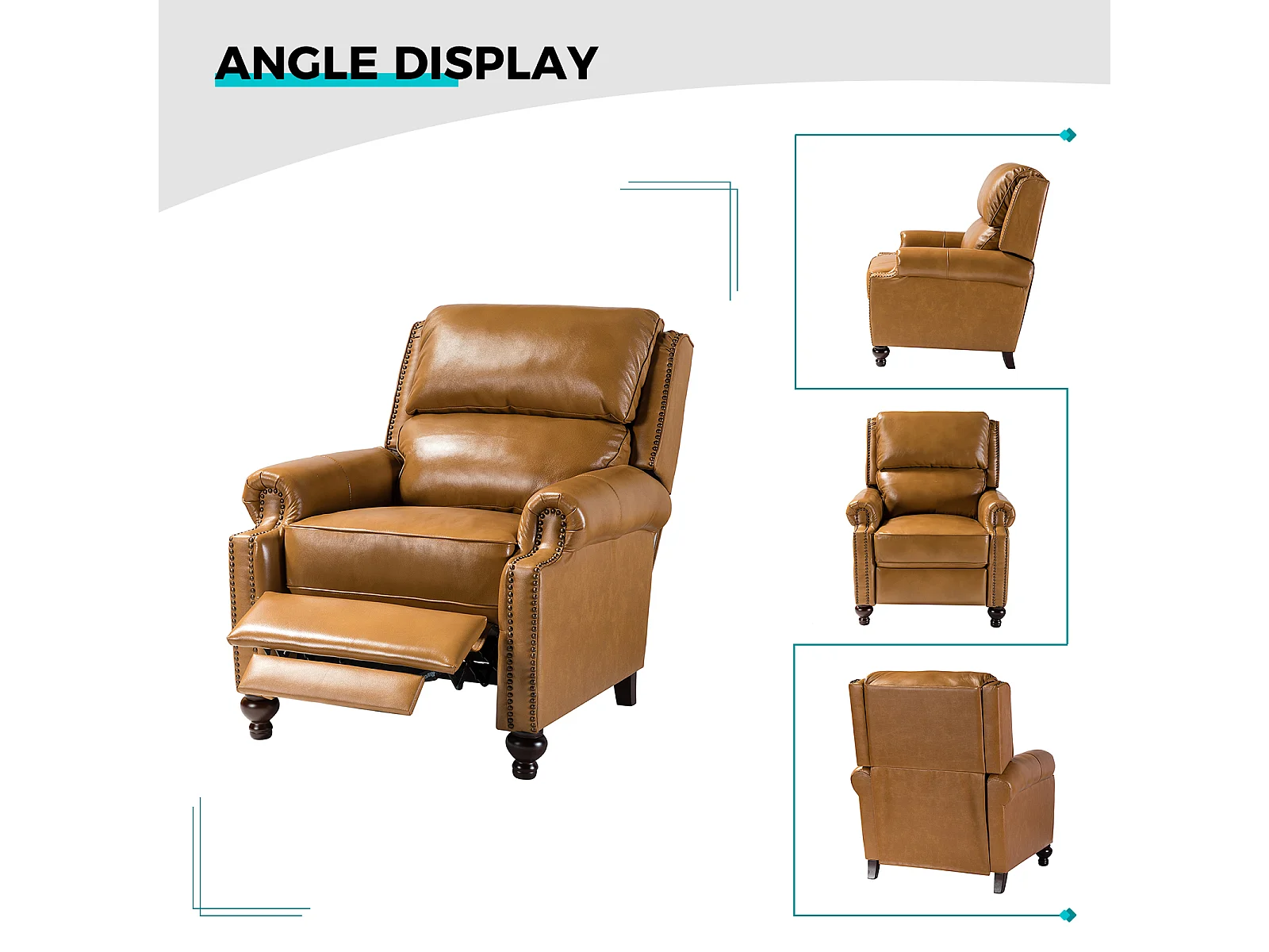 Fauteuil Cigare en cuir réglable, inclinable, canapé vintage avec garniture à tête de clou,Camel