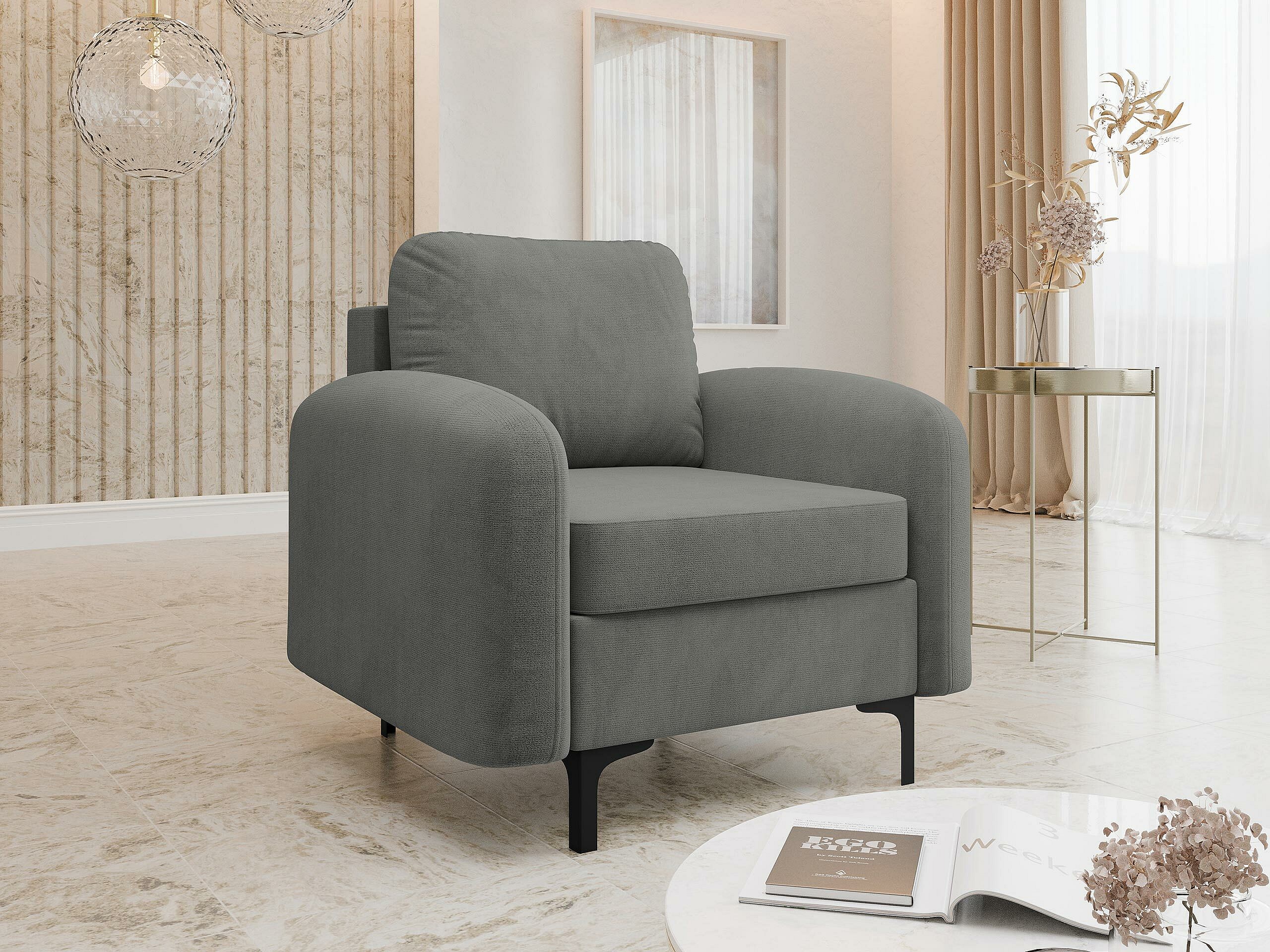 Fauteuil Torlua 100, Gris, 96x92x94cm, Tapisserie, Pieds: Métal