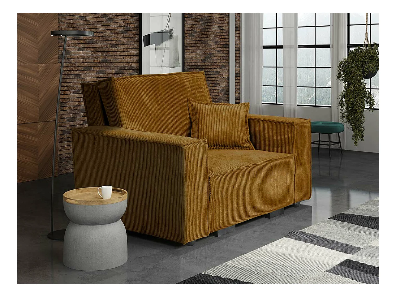 Fauteuil Columbus 180, Jaune, 85x123x98cm, Tapisserie, Pieds: Bois