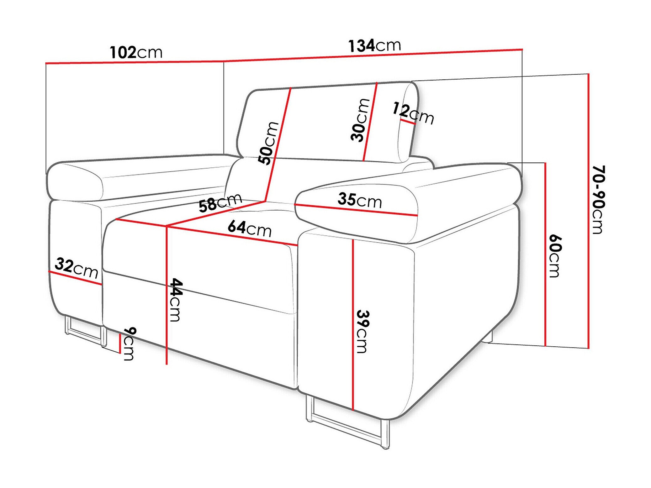 Fauteuil Comfivo Eliferu 106, Gris, 70x134x102cm, Tapisserie, Pieds: Métal