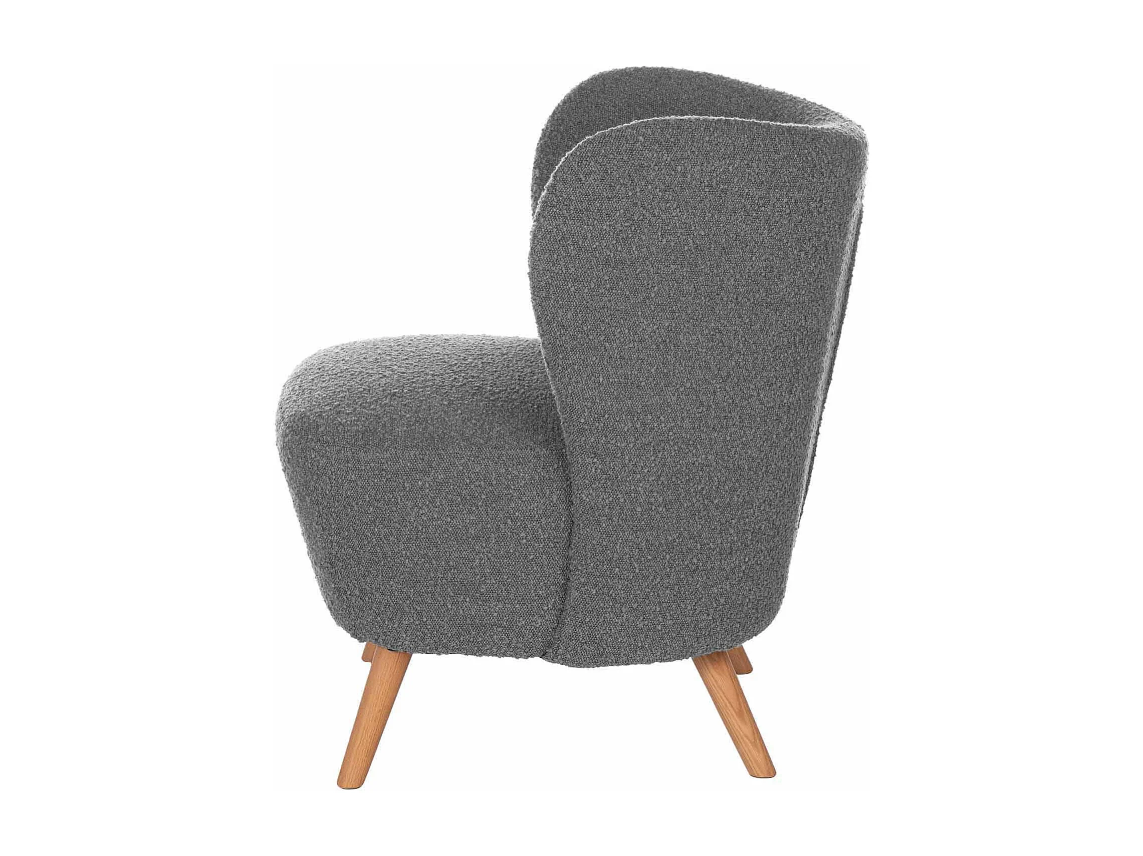 Fauteuil confortable tissu gris clair et pieds bois naturel Korta 75cm