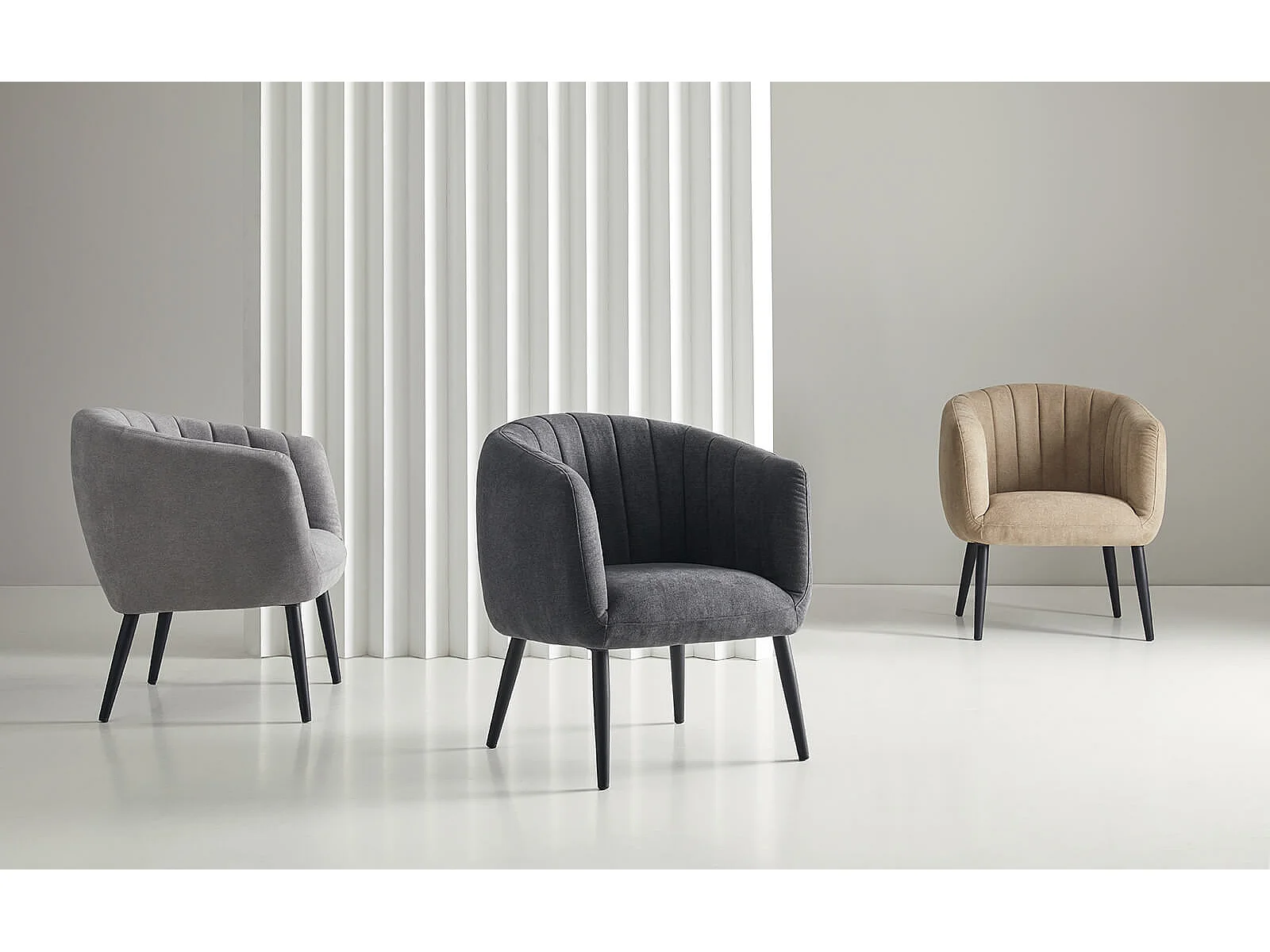 Fauteuil confortable tissu marron clair et pieds métal noir Vina 68cm