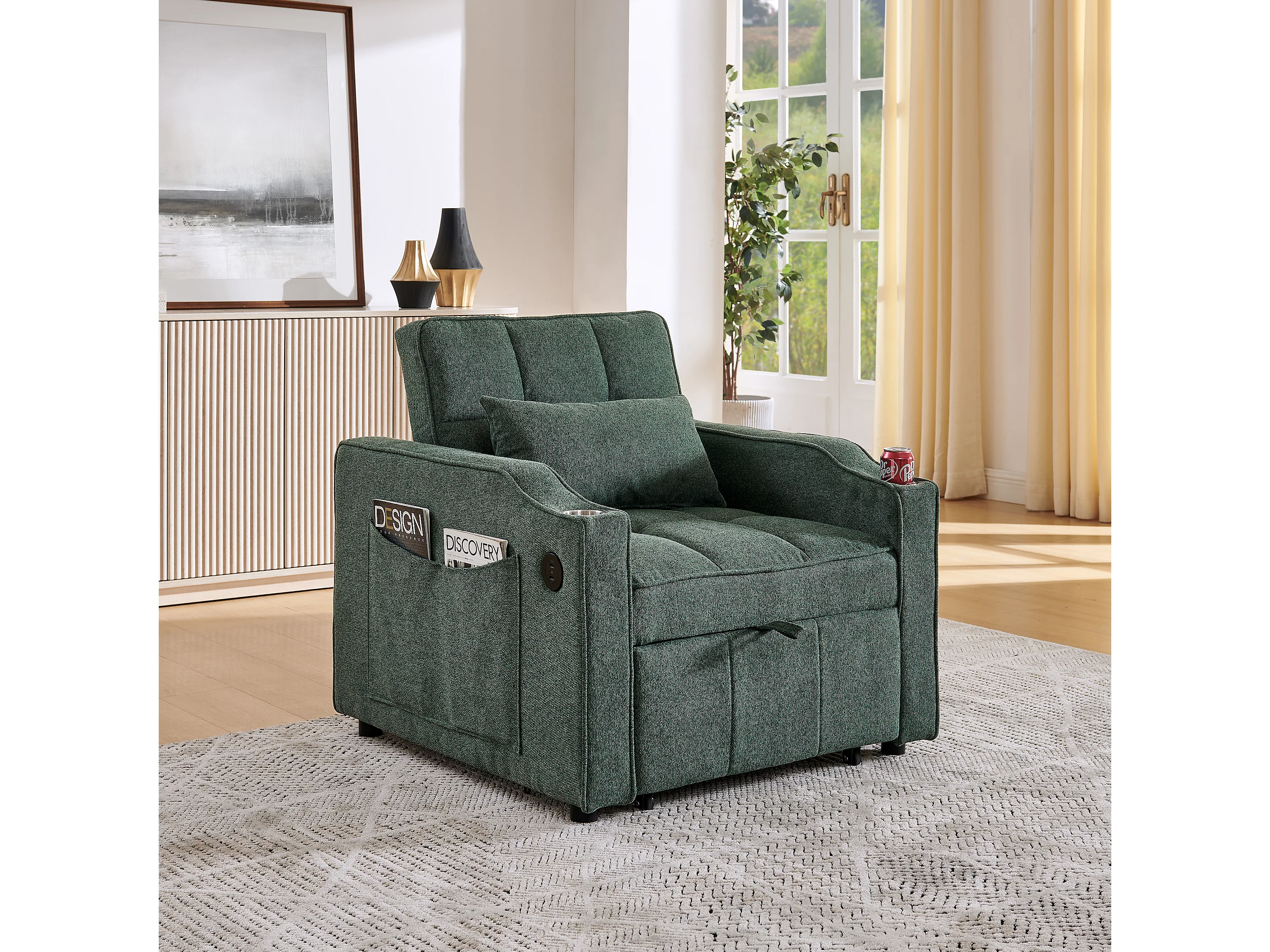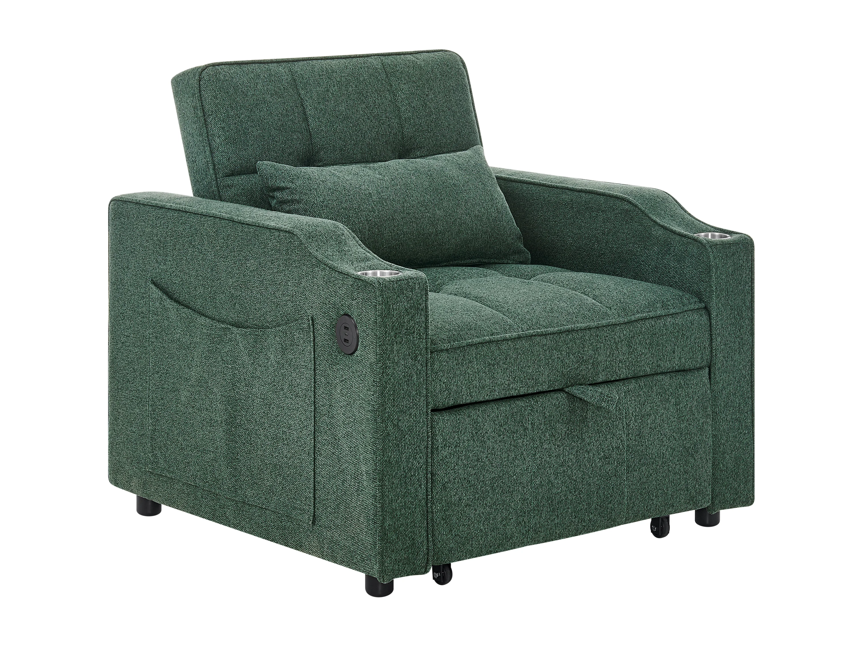 Fauteuil convertible 3-en-1 avec ports USB - Canapé-lit en tissu vert