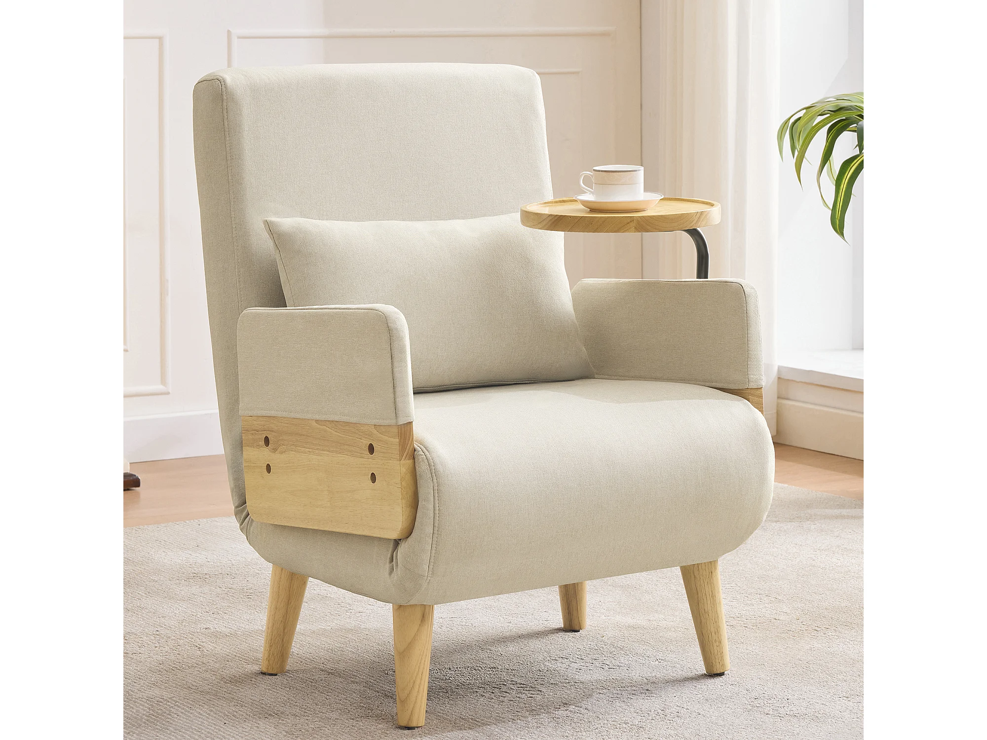 Fauteuil convertible 3 en 1, Canapé-lit pliant - 58 x 67 x 88 cm - Tissu en lin - avec fonction couchage - Beige