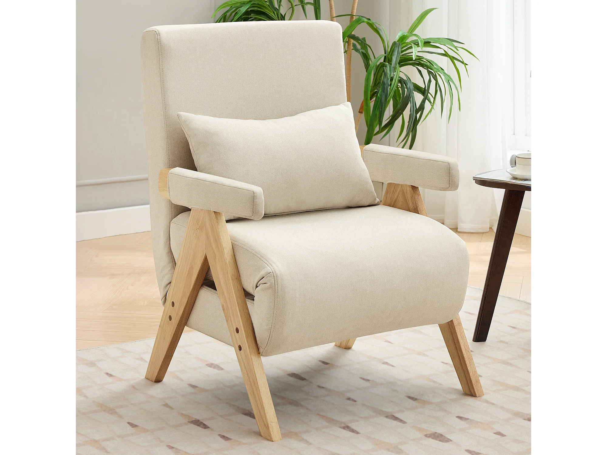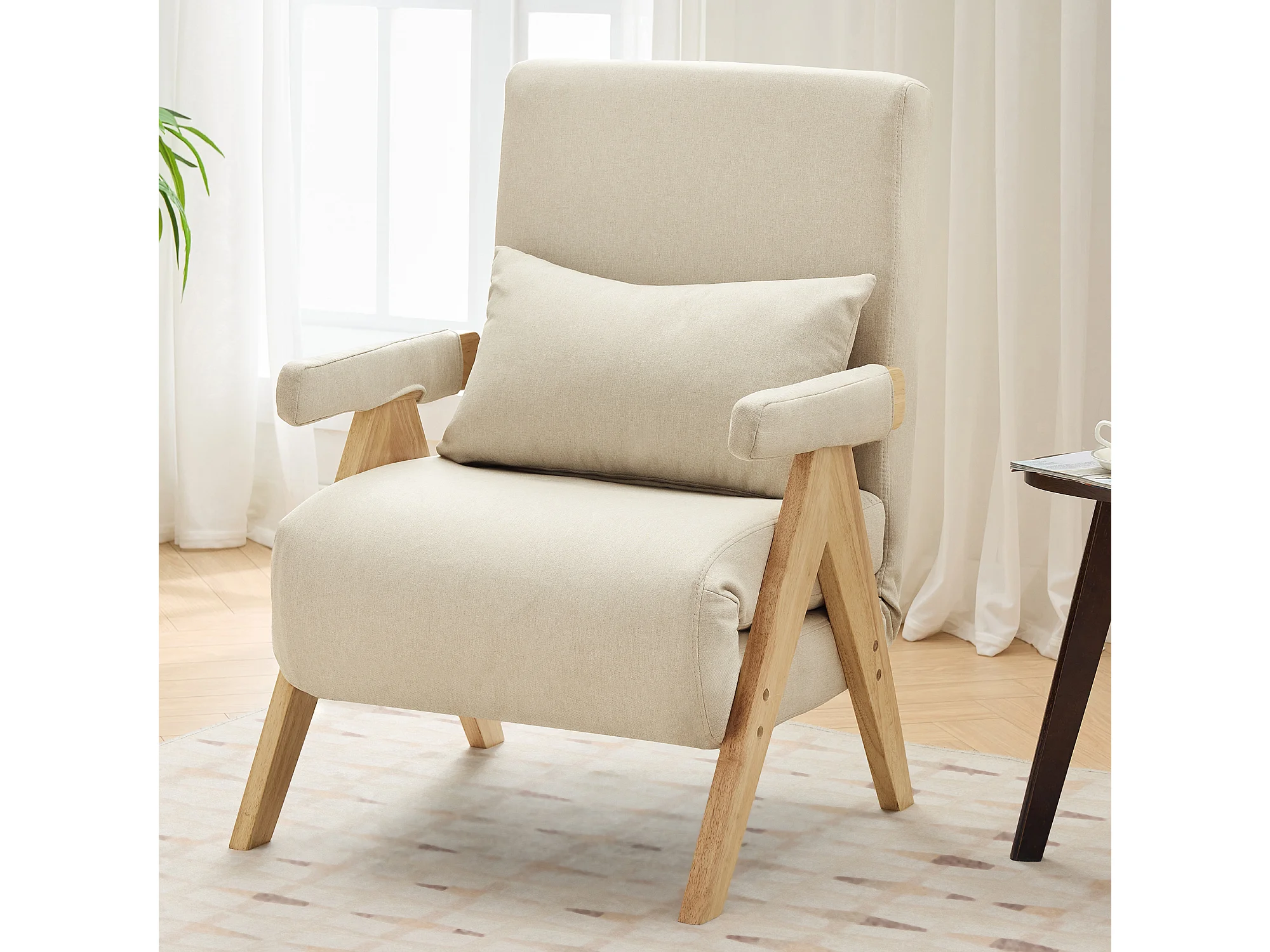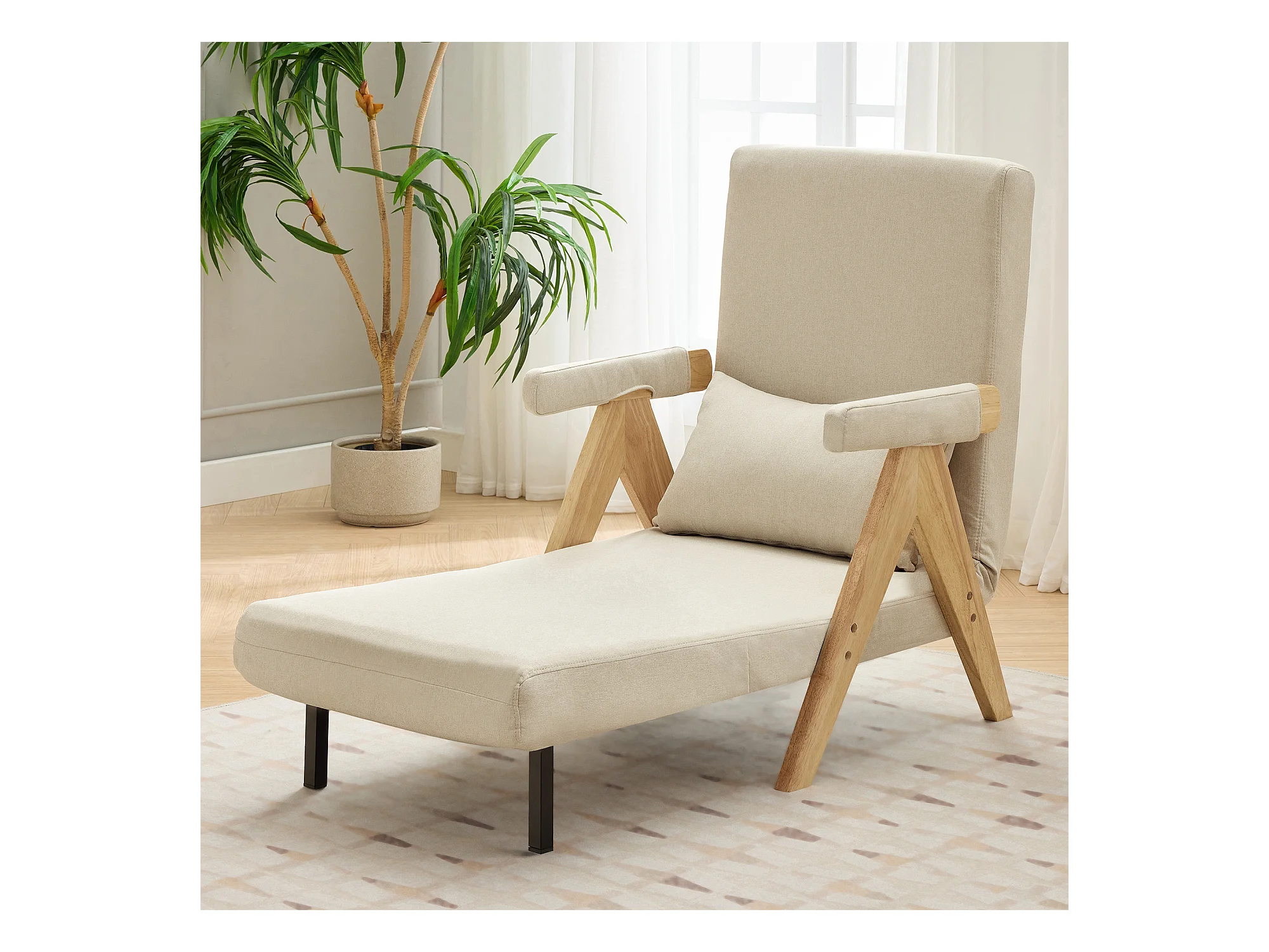 Fauteuil convertible 3 en 1, Canapé-lit pliant - 64 x 68.5 x 93 cm - Tissu en lin - avec fonction couchage Beige