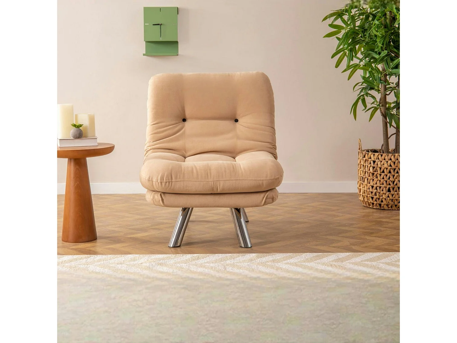 Fauteuil convertible banquette beige pieds chromés CUSCO
