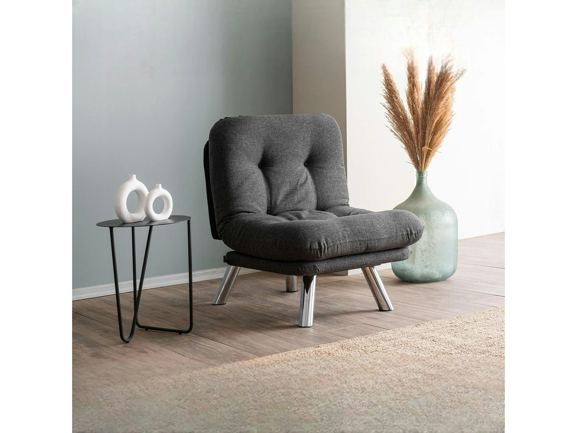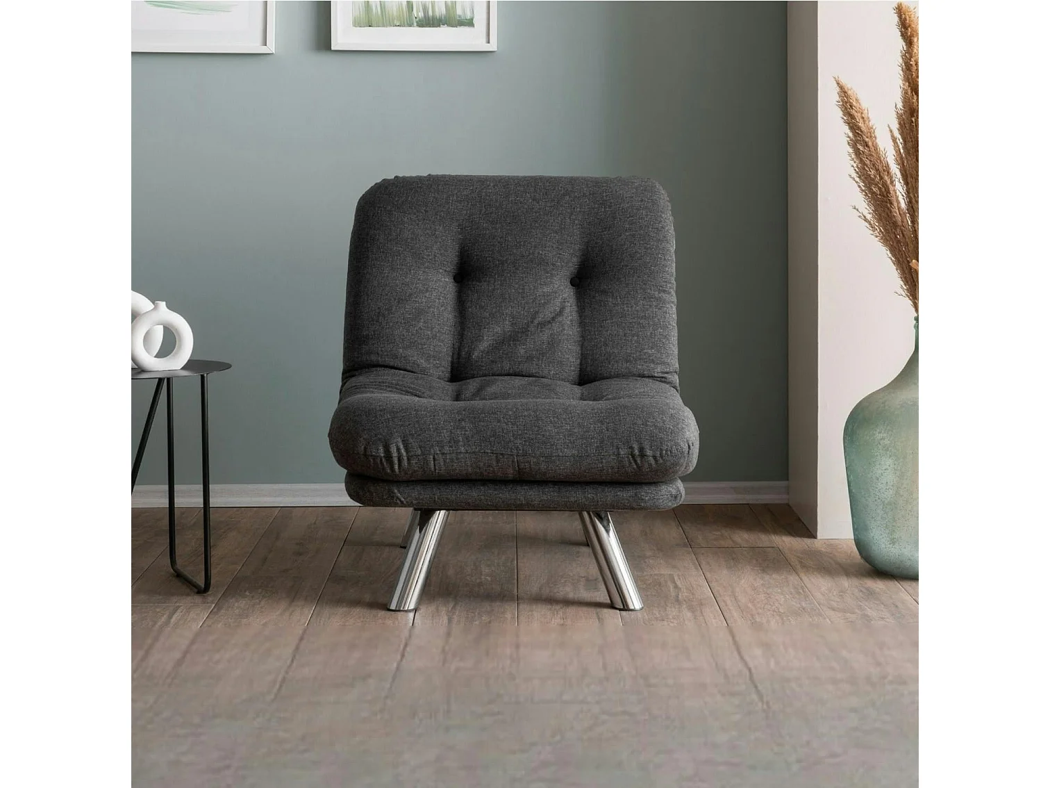 Fauteuil convertible banquette gris foncé pieds chromés CUSCO