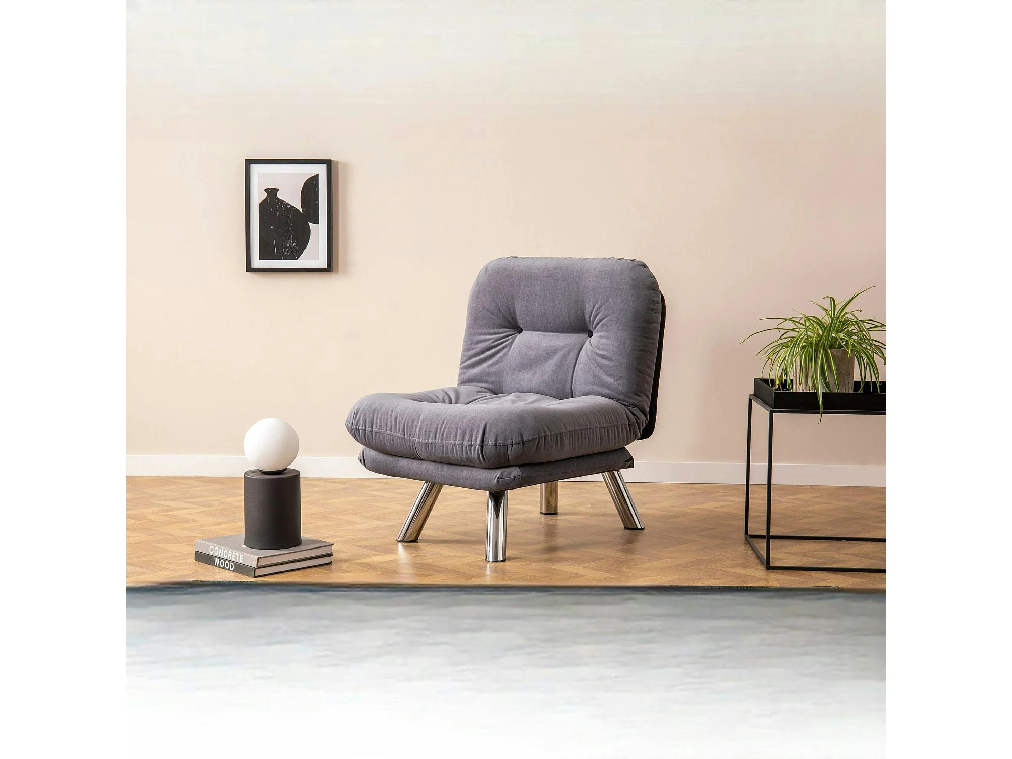 Fauteuil convertible banquette gris orage pieds chromés CUSCO