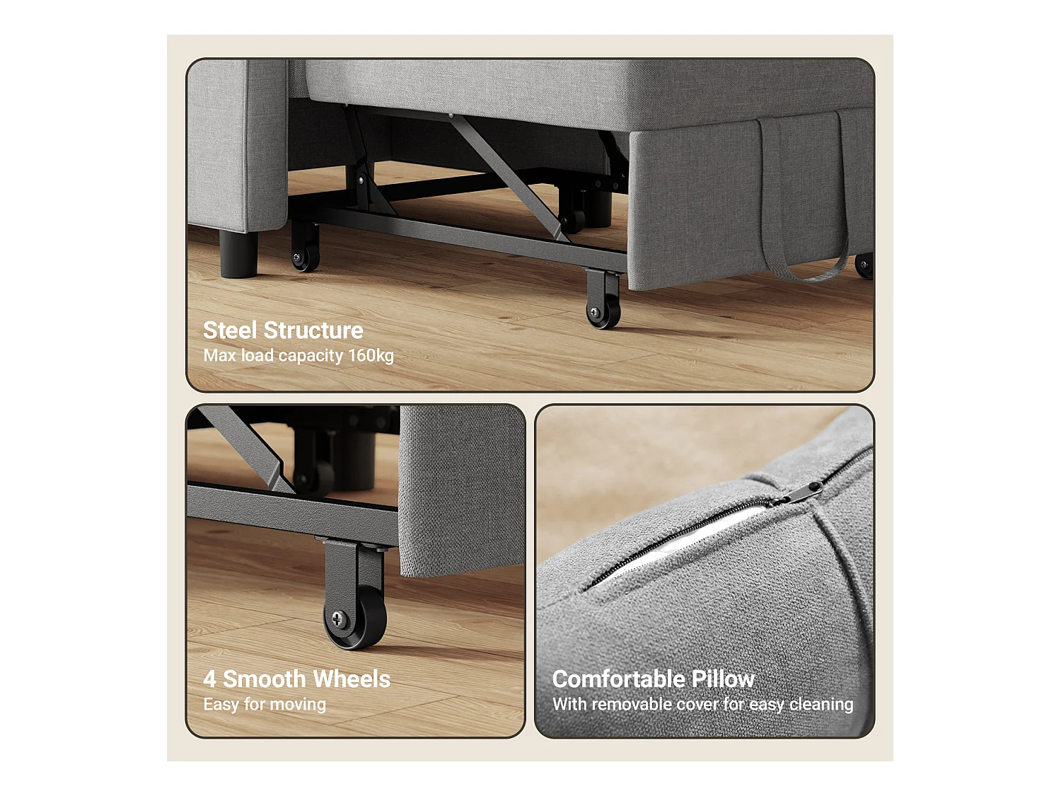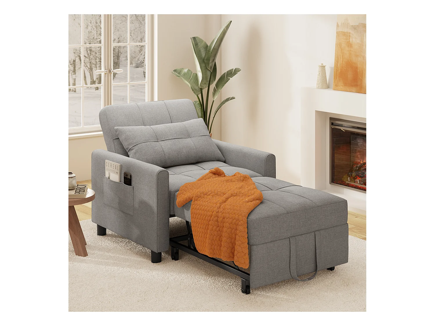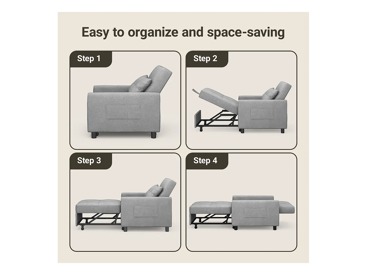 Fauteuil Convertible Bealife Fauteuil Lit Canapé 1 Place Chaise Longue Coussin Réglable Rangement Roues Pliante AR21-G