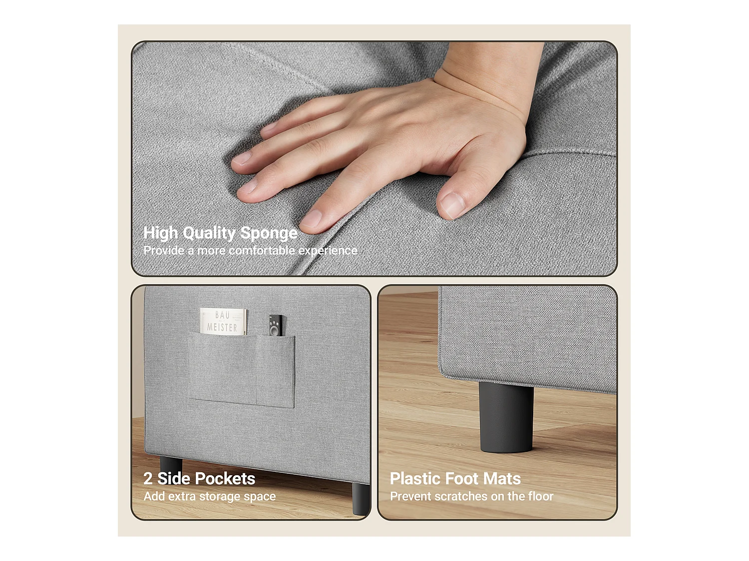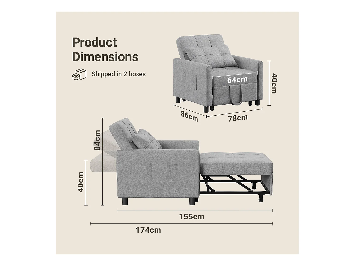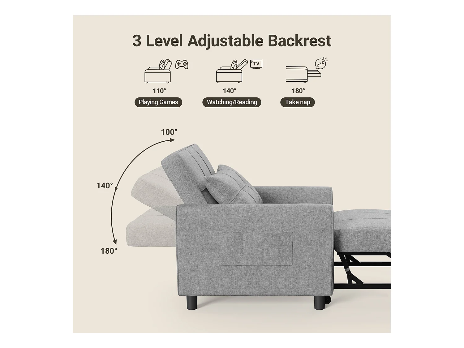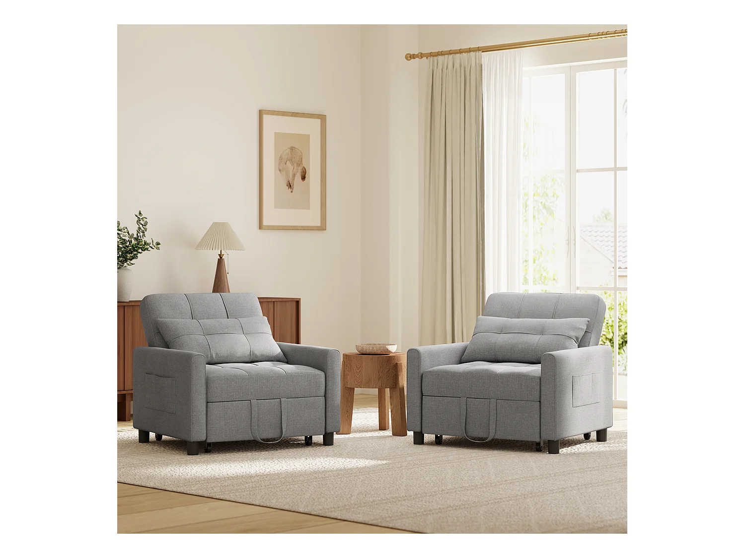 Fauteuil Convertible Bealife Fauteuil Lit Canapé 1 Place Chaise Longue Coussin Réglable Rangement Roues Pliante AR21-G