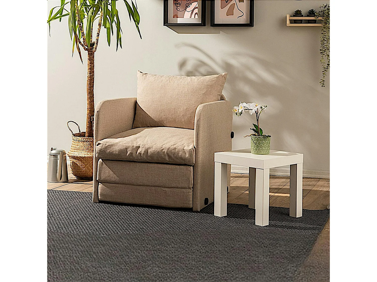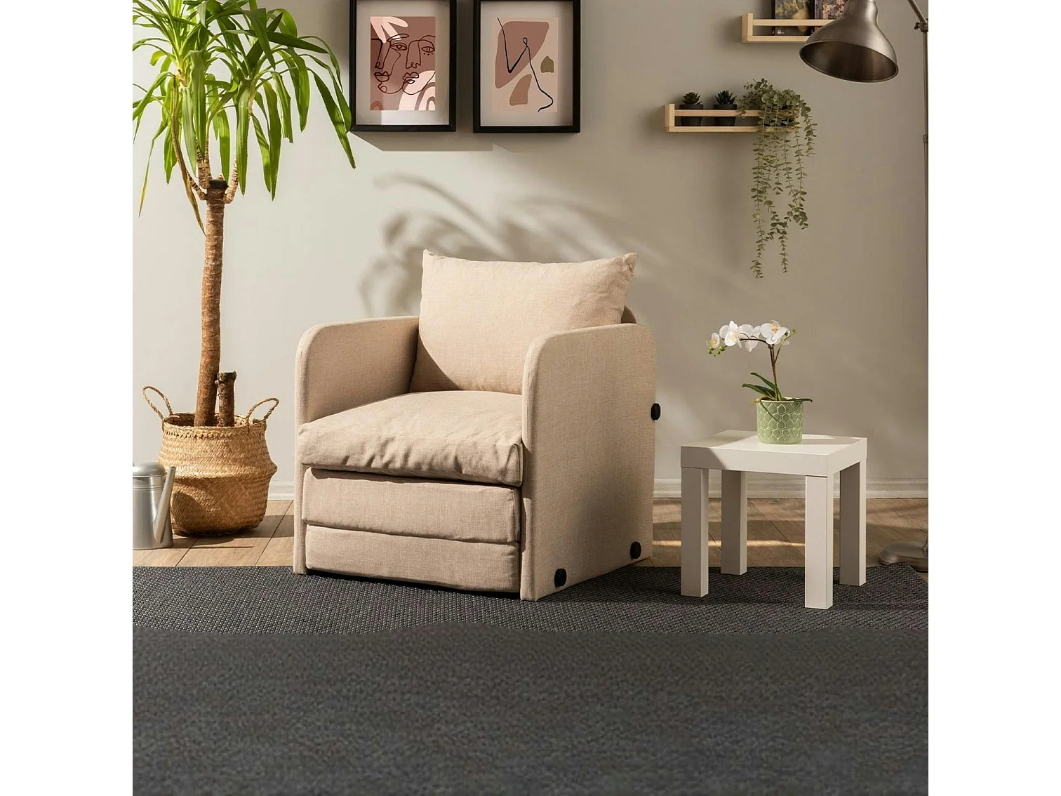 Fauteuil convertible beige lin 1 place couchage 200 cm ORURO