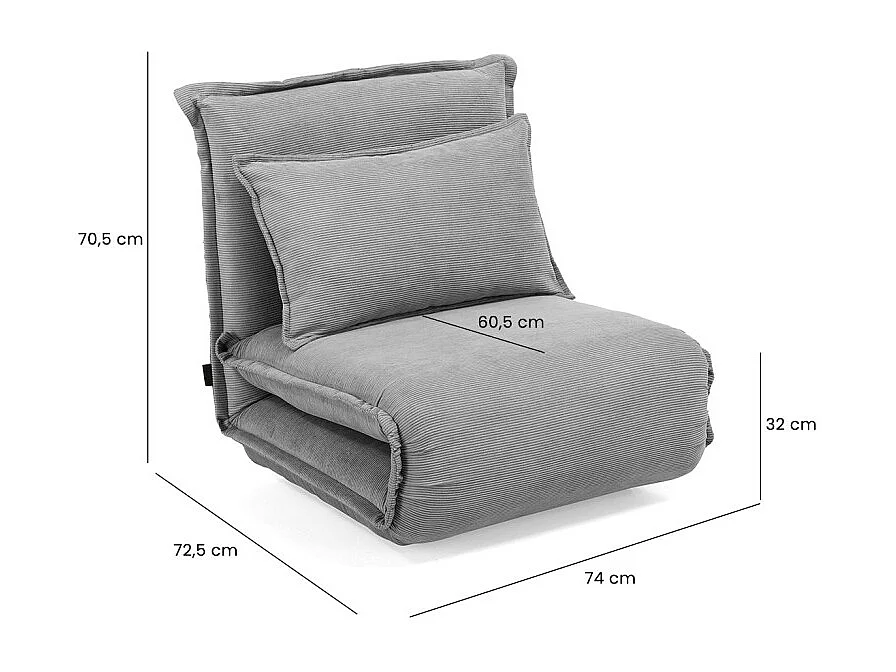 Chauffeuse convertible 3-en-1 en velours côtelé gris – GRACIE