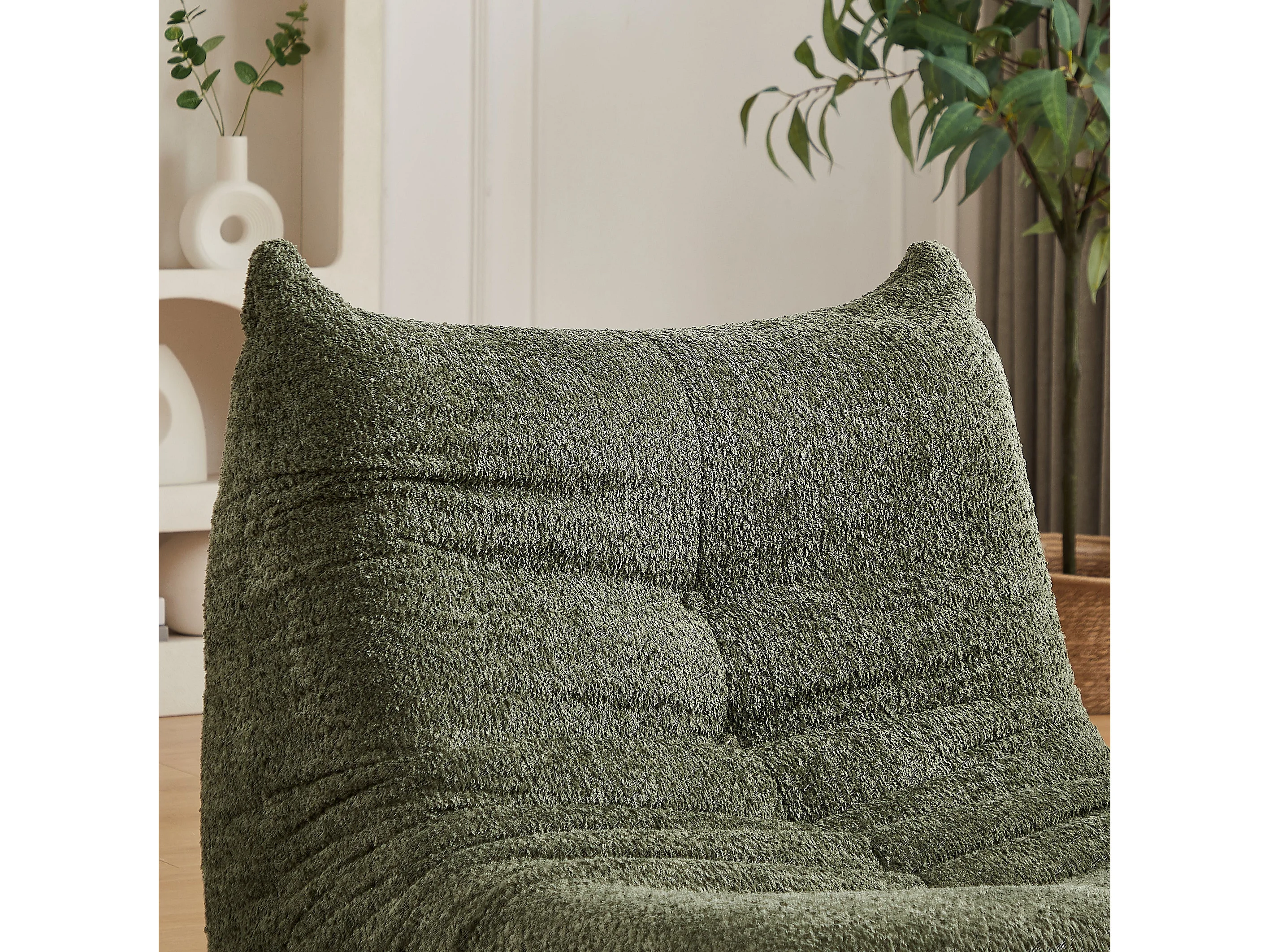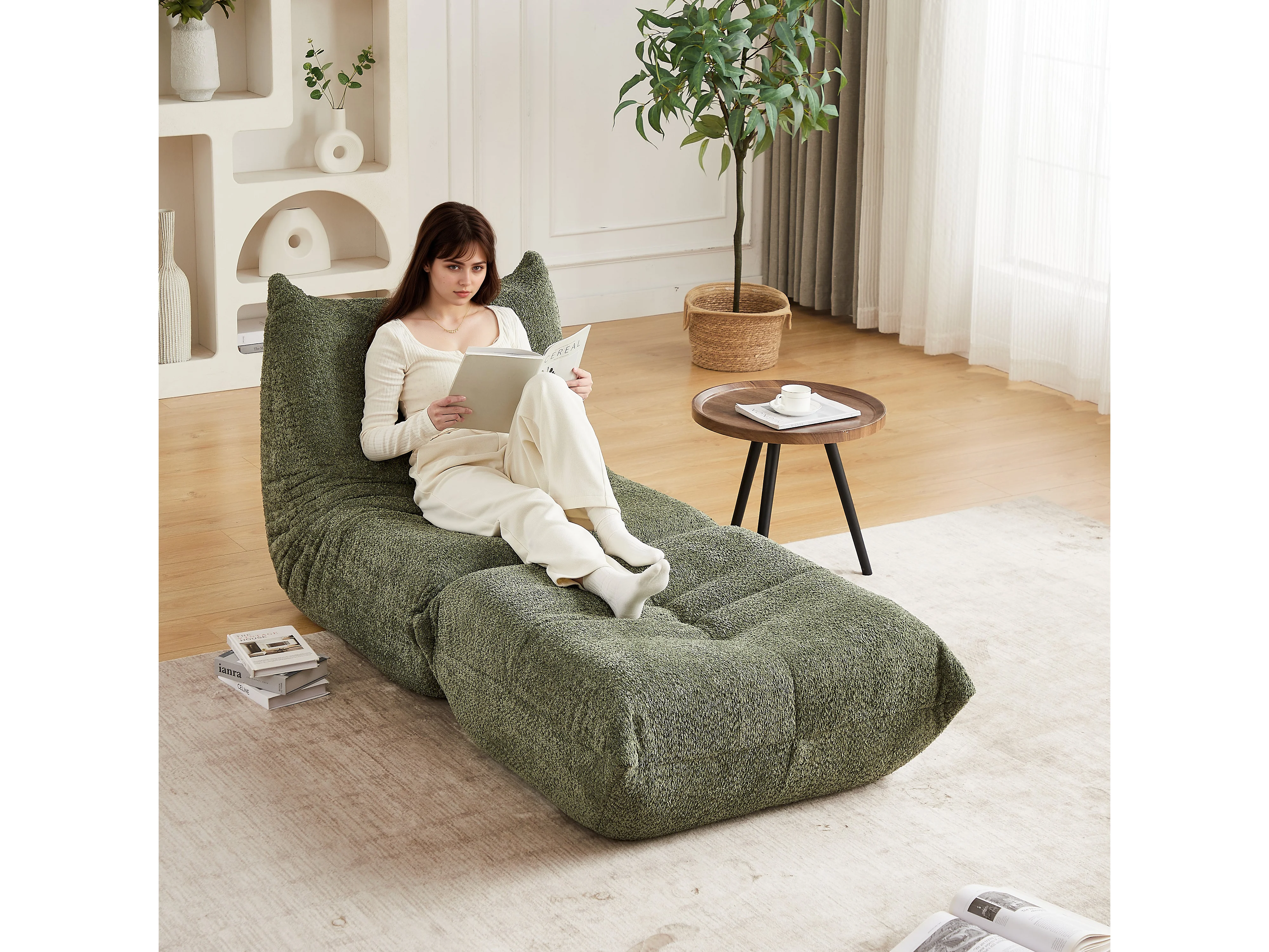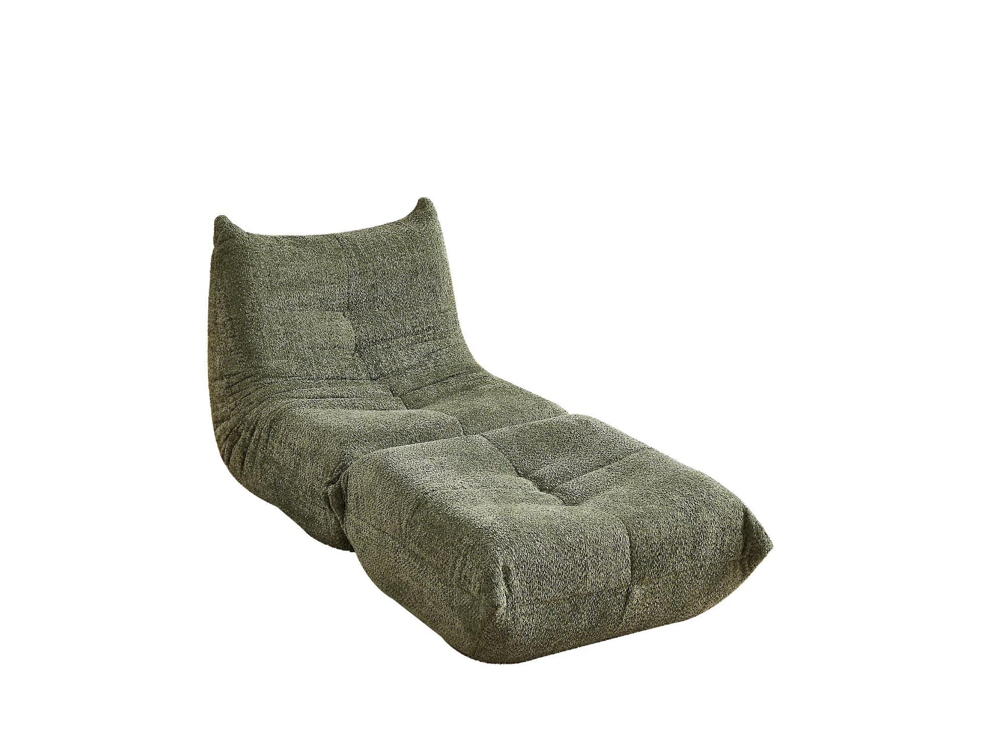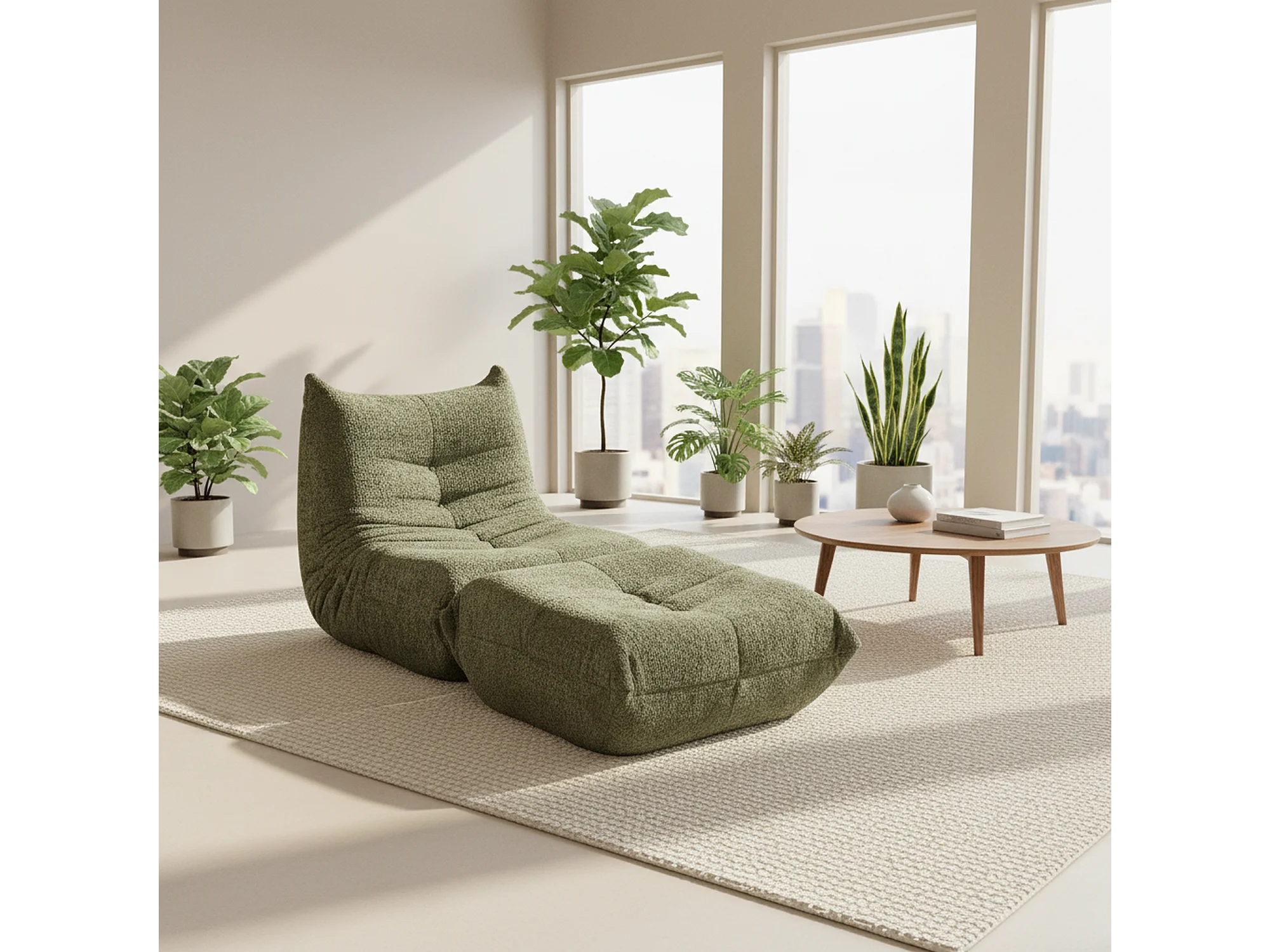 Fauteuil convertible chenille vert avec repose-pieds sans accoudoirs