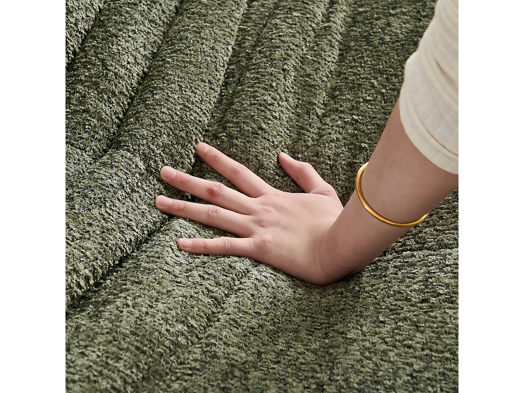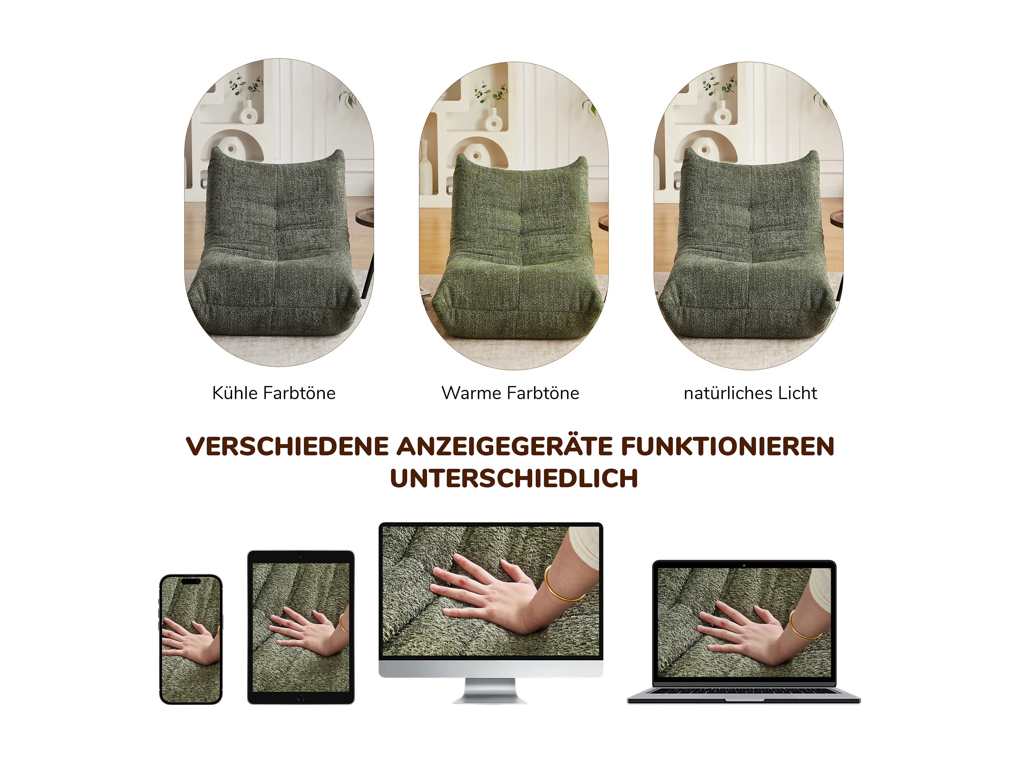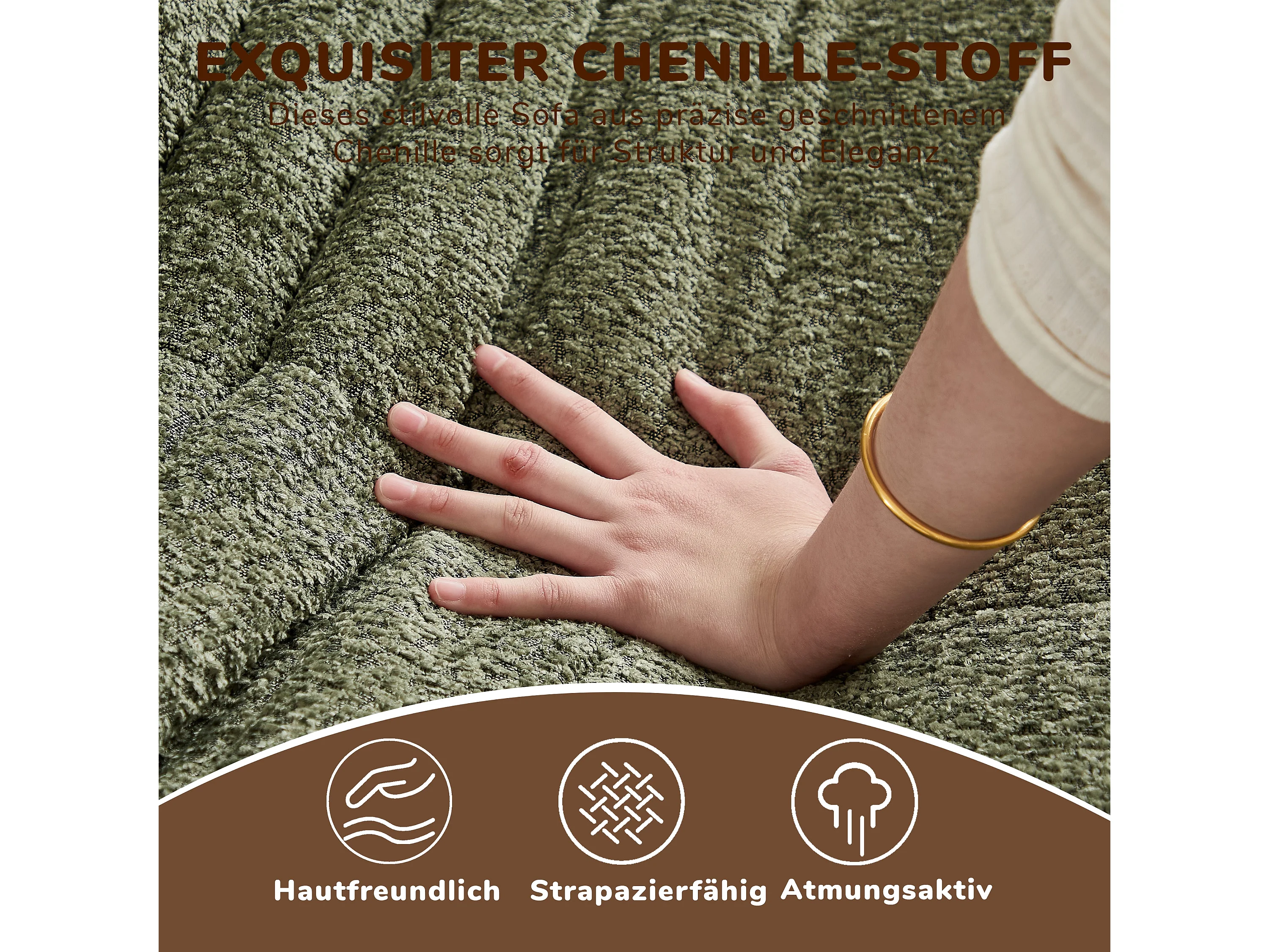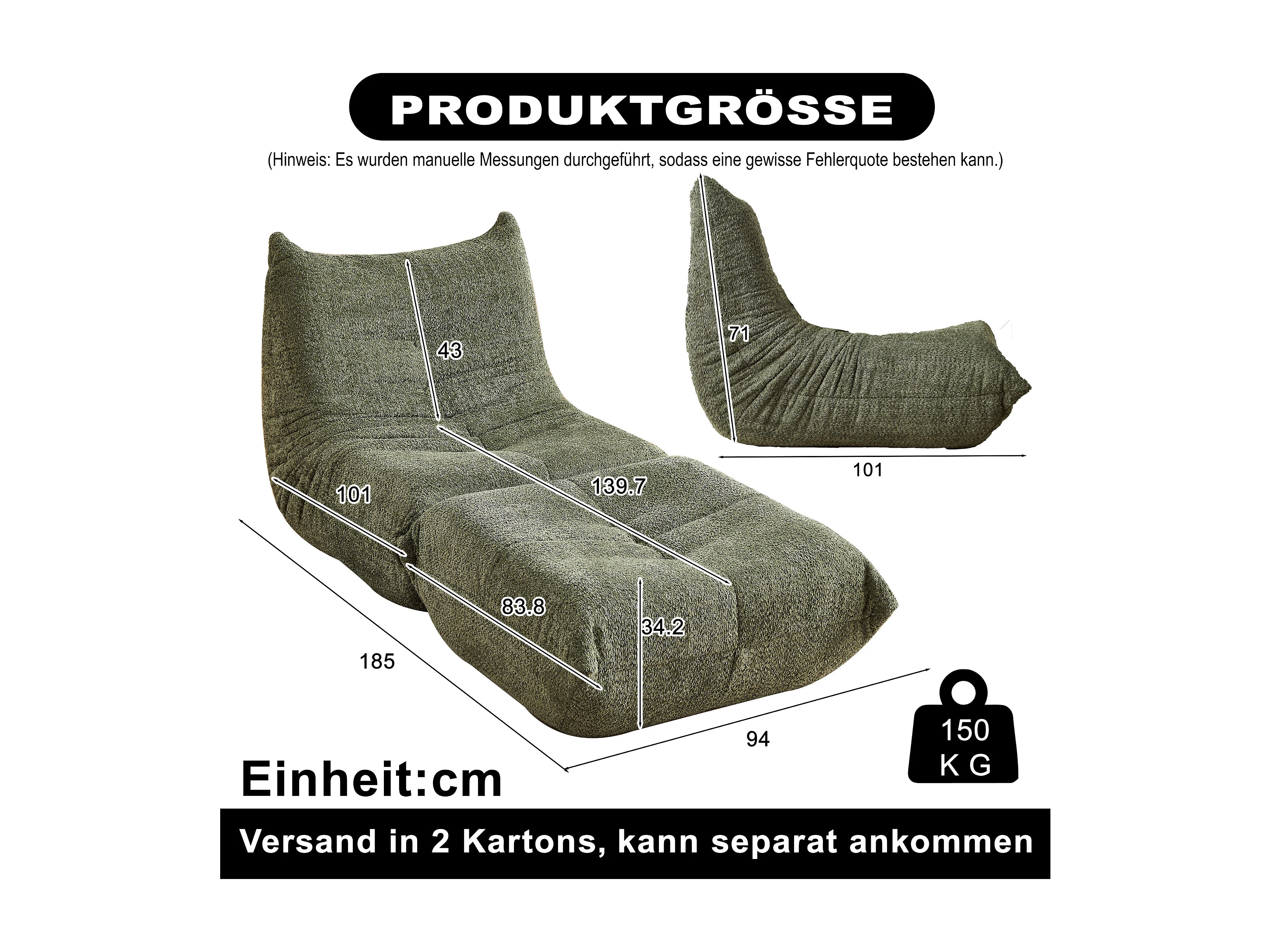 Fauteuil convertible chenille vert avec repose-pieds sans accoudoirs