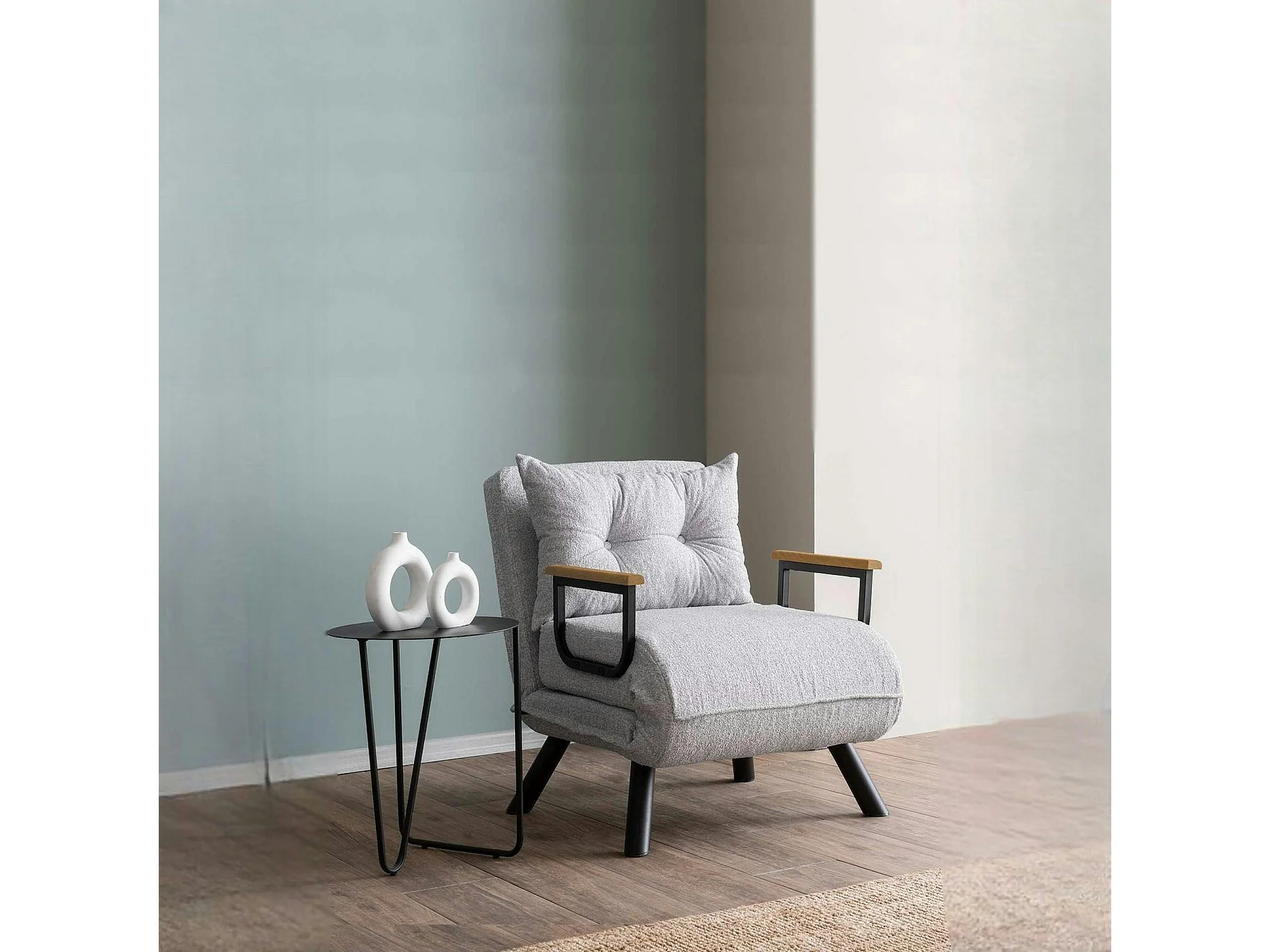 Fauteuil convertible gris clair bouclette 1 place 175 cm MODI