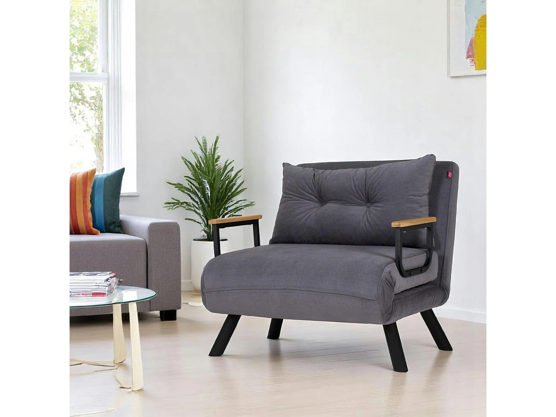 Fauteuil convertible gris - coussin assorti MODI
