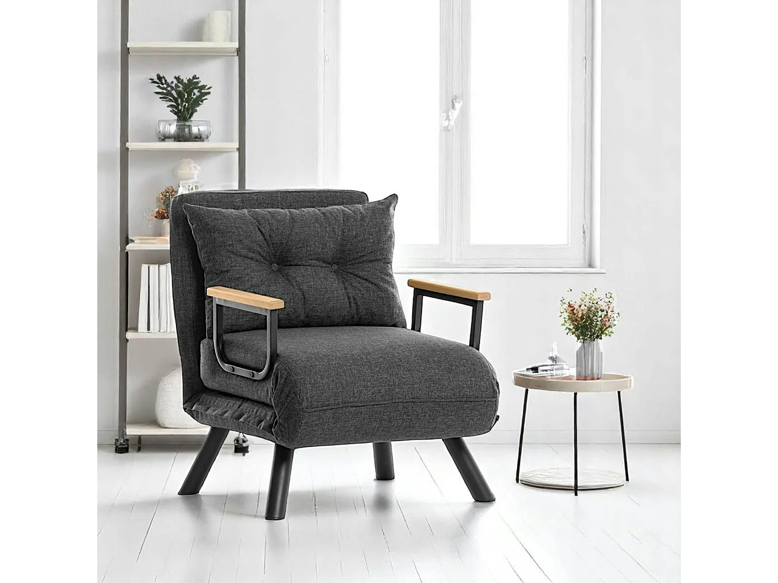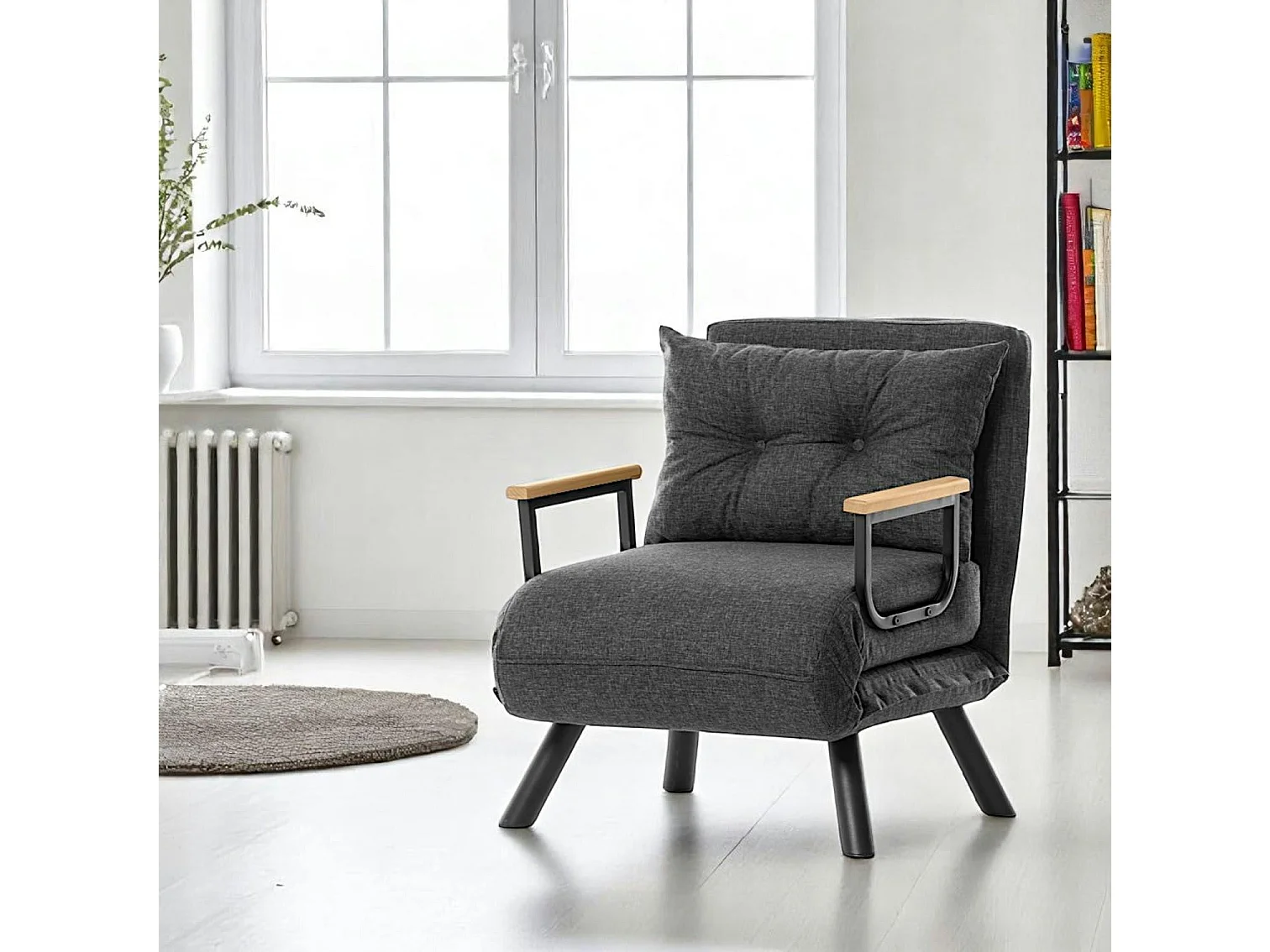 Fauteuil convertible gris foncé - coussin assorti MODI