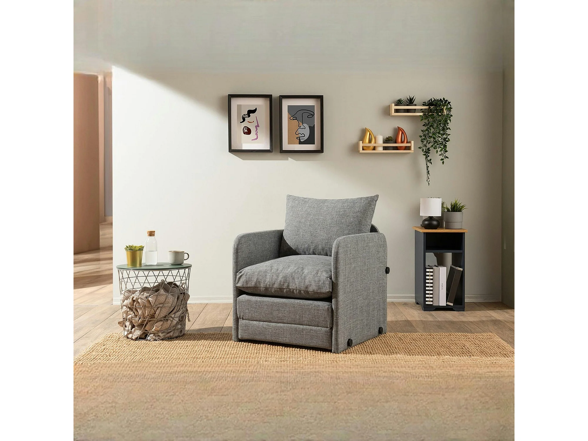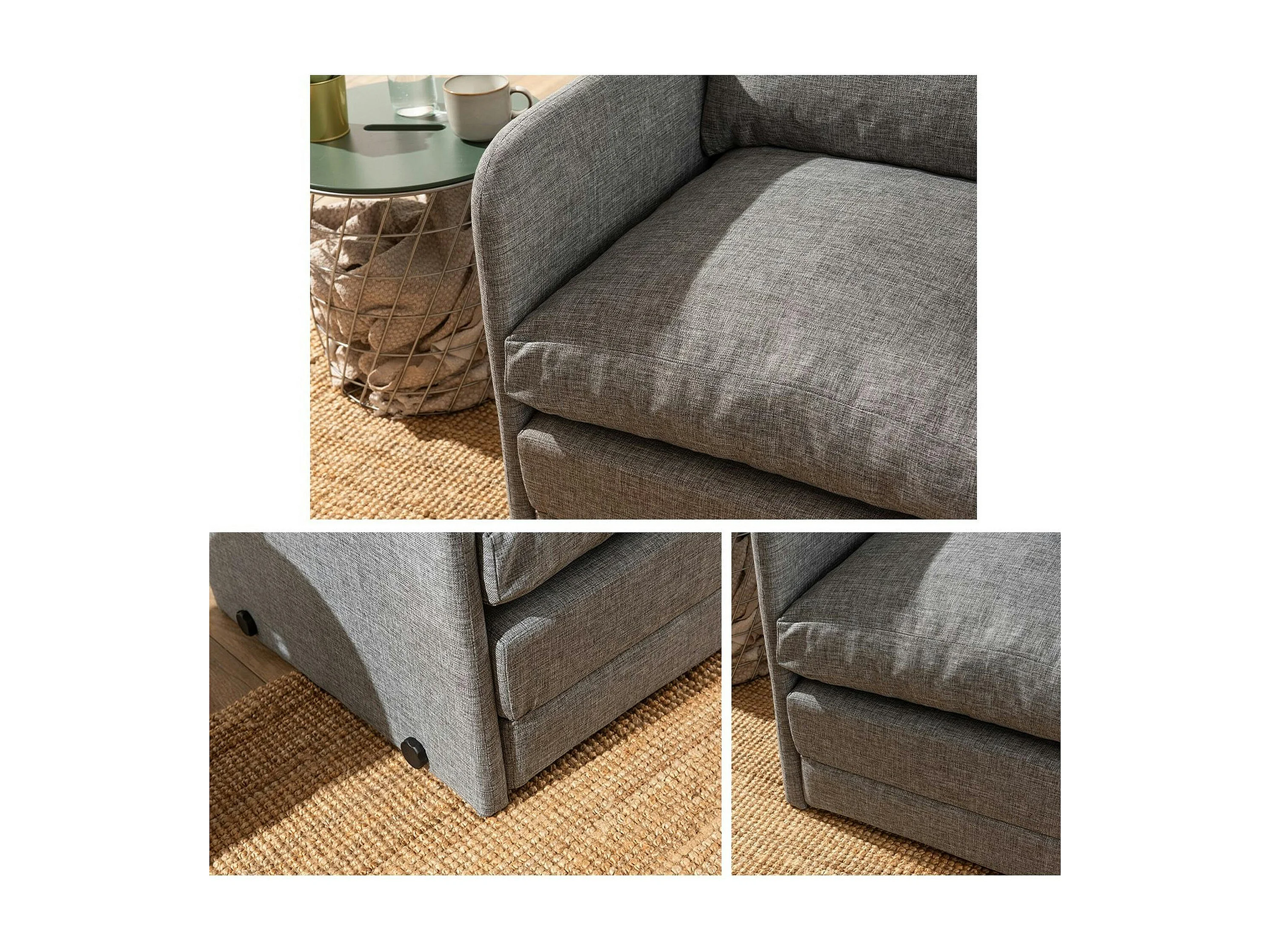 Fauteuil convertible gris lin 1 place couchage 200 cm ORURO