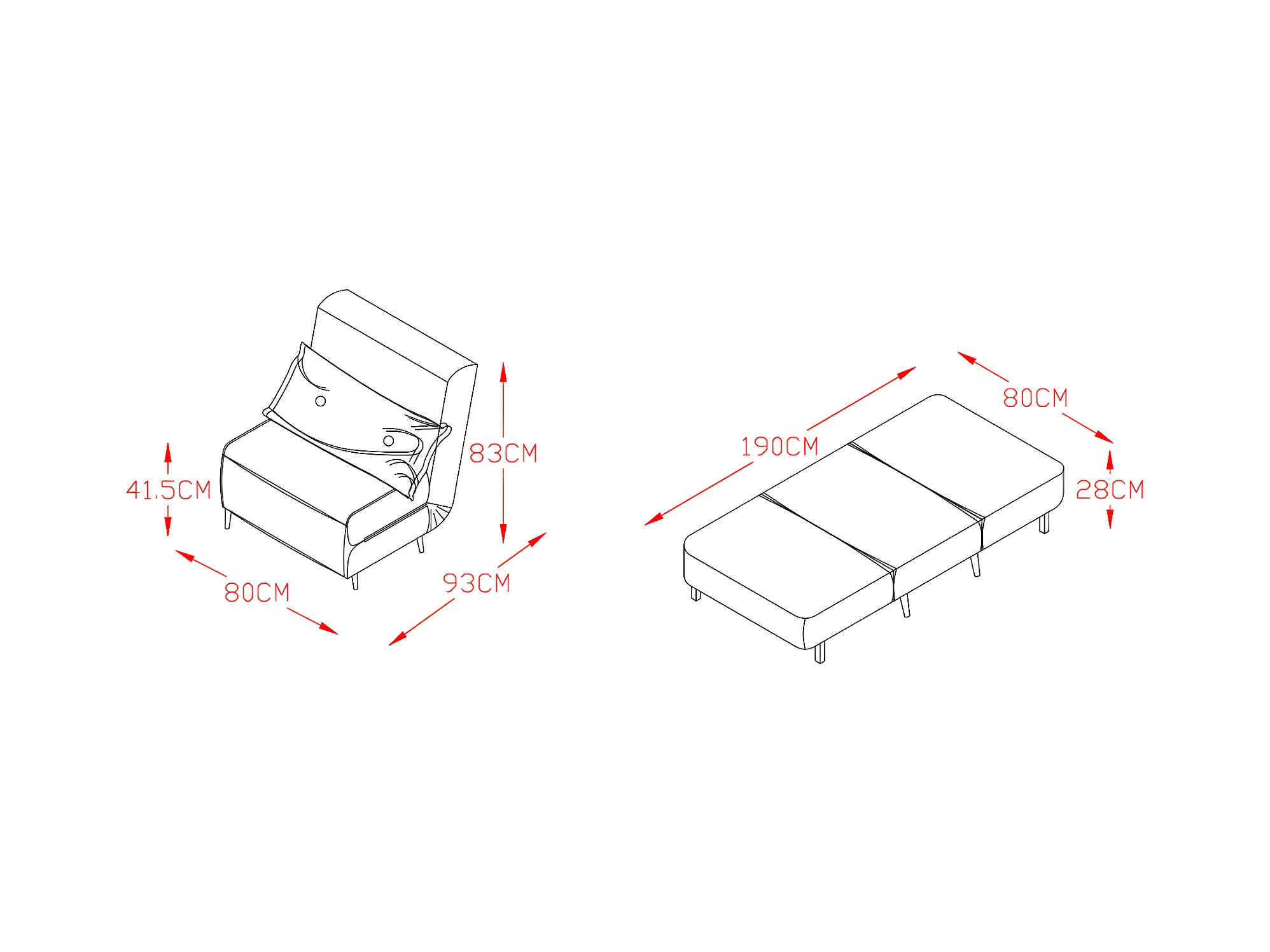 Fauteuil convertible lit une place tissu velours Blanc dimension: 80 x 90 x 84 cm - dimension lit: 80 x 190 x 28 cm