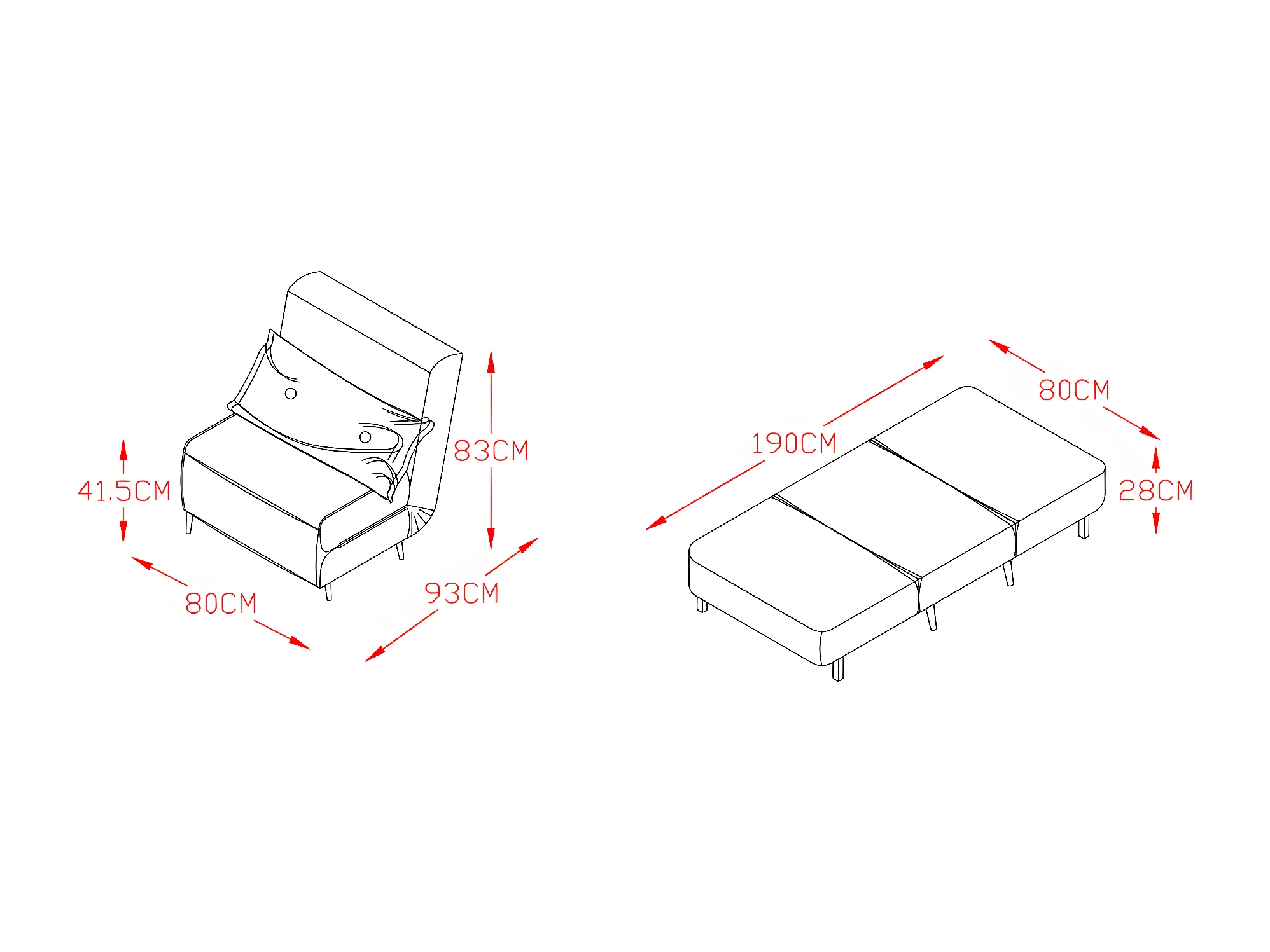 Fauteuil convertible noir en velours une place dimensions 80x90x84 cm lit 80x190x28 cm
