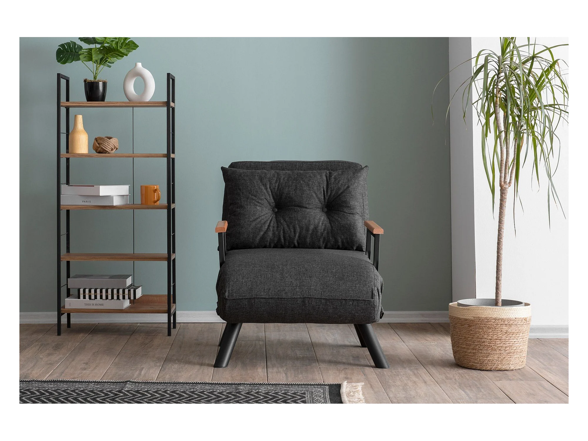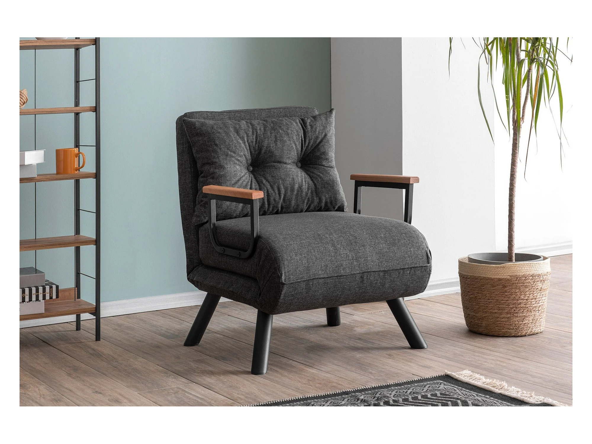 Fauteuil convertible Yolanda Métal Noir et Lin Gris foncé