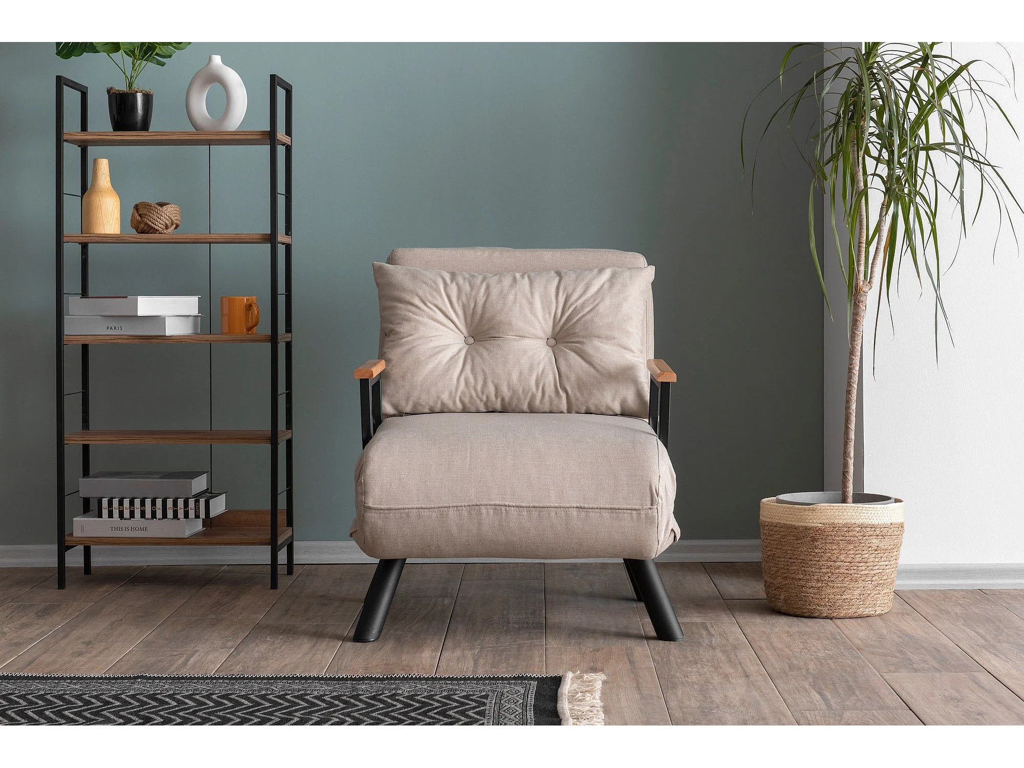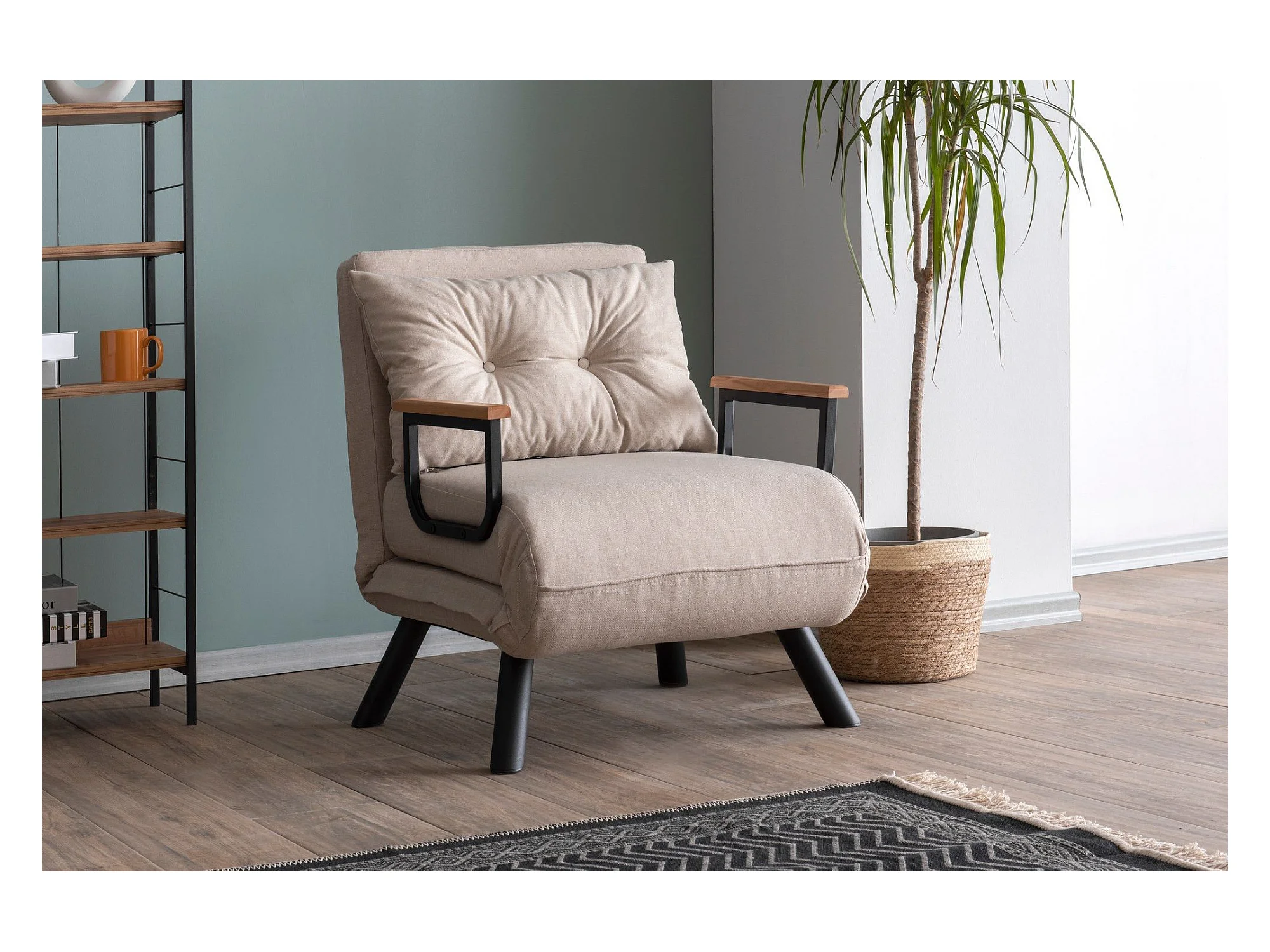 Fauteuil convertible Yolanda Métal Noir et Tissu Blanc crème