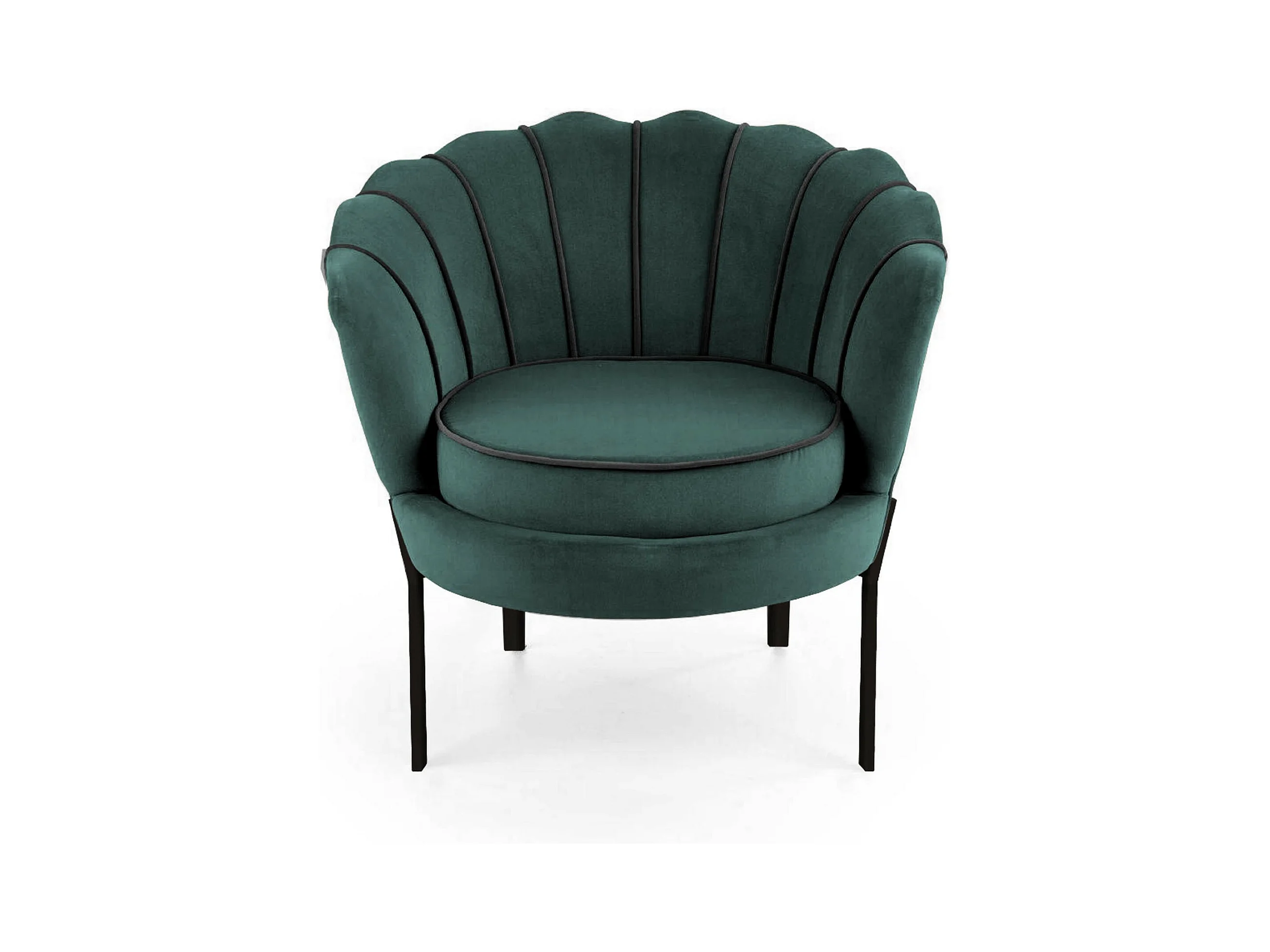 Fauteuil coquillage en velours vert avec pieds noirs en métal HOEL