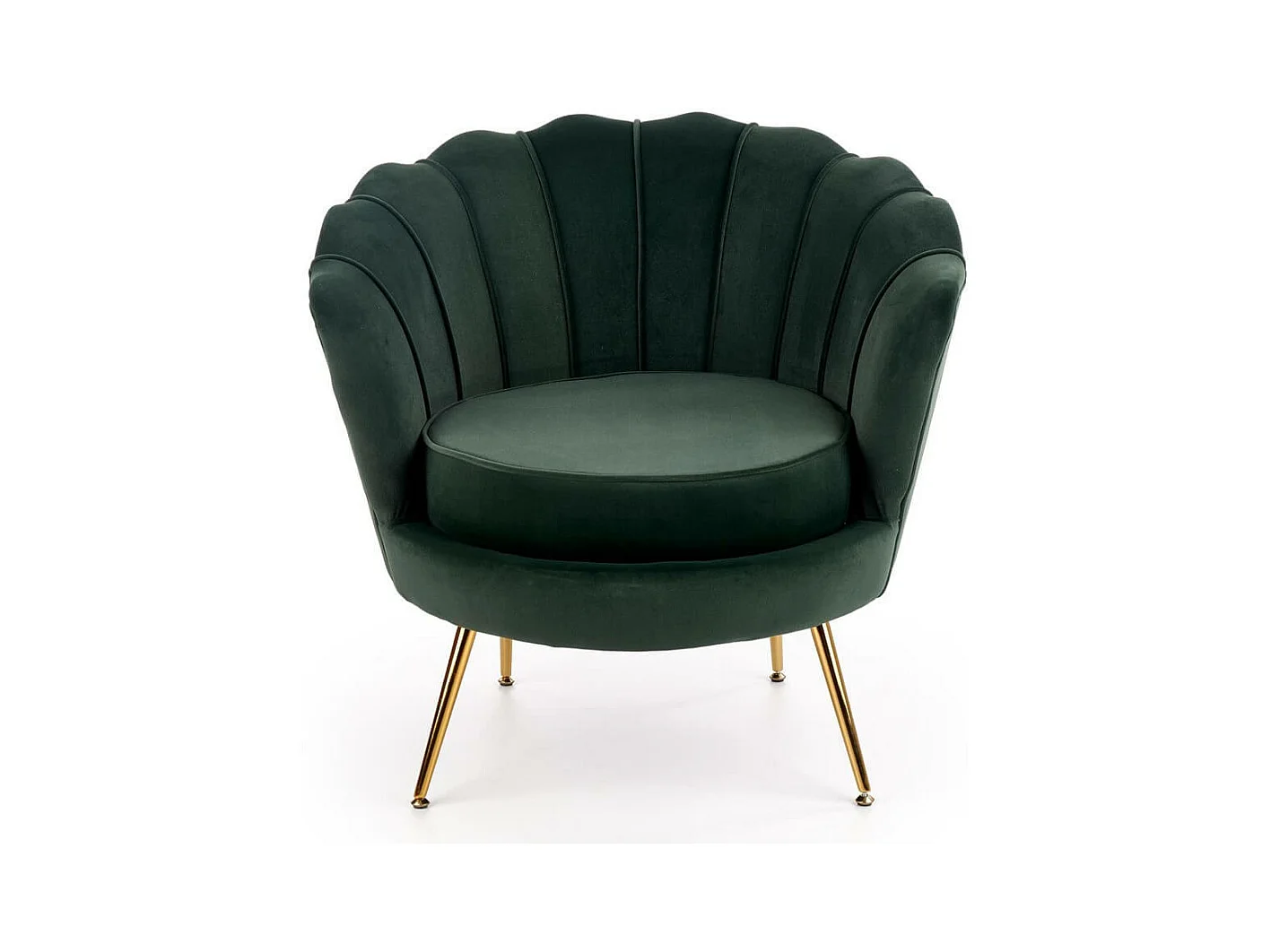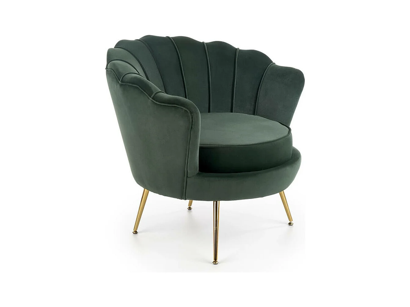 Fauteuil Coquillage en velours vert foncé avec pieds dorés CAPRICA