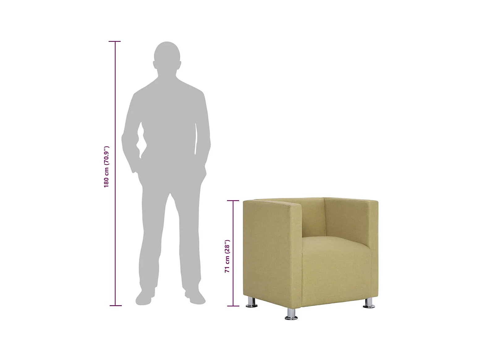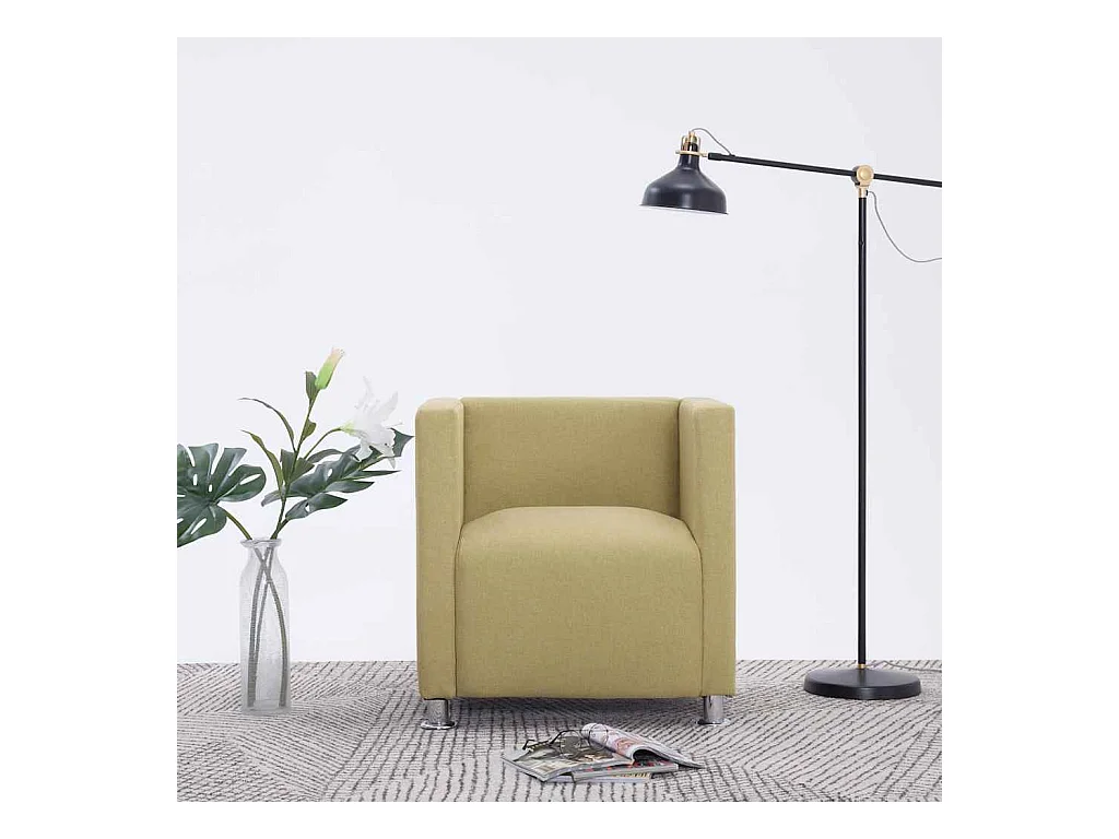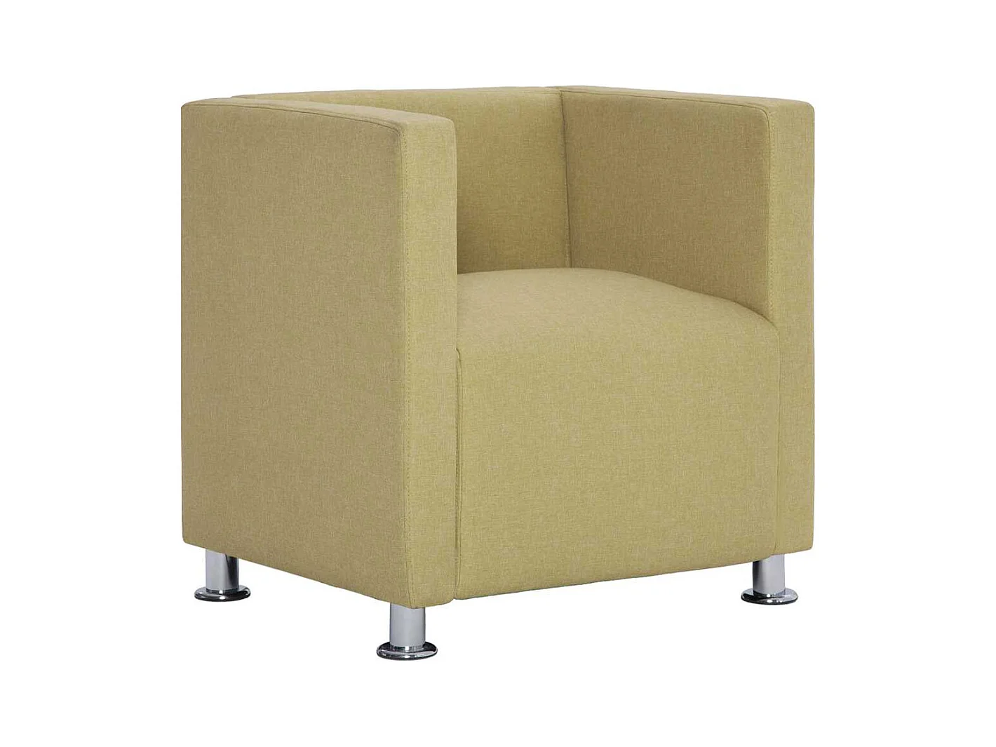 Fauteuil vert - Fauteuil avec dossier et accoudoirs - pieds et coussins en bois - velours teddy