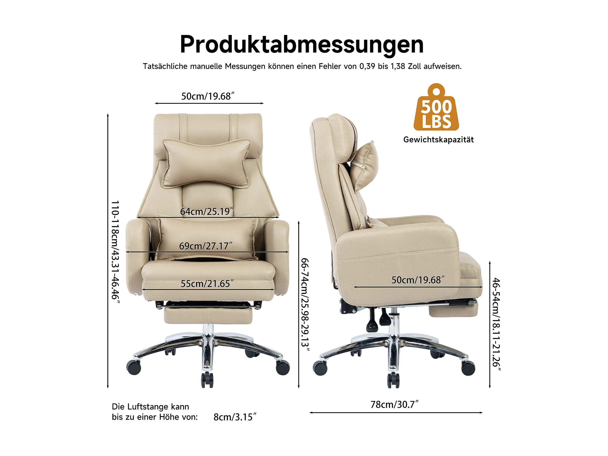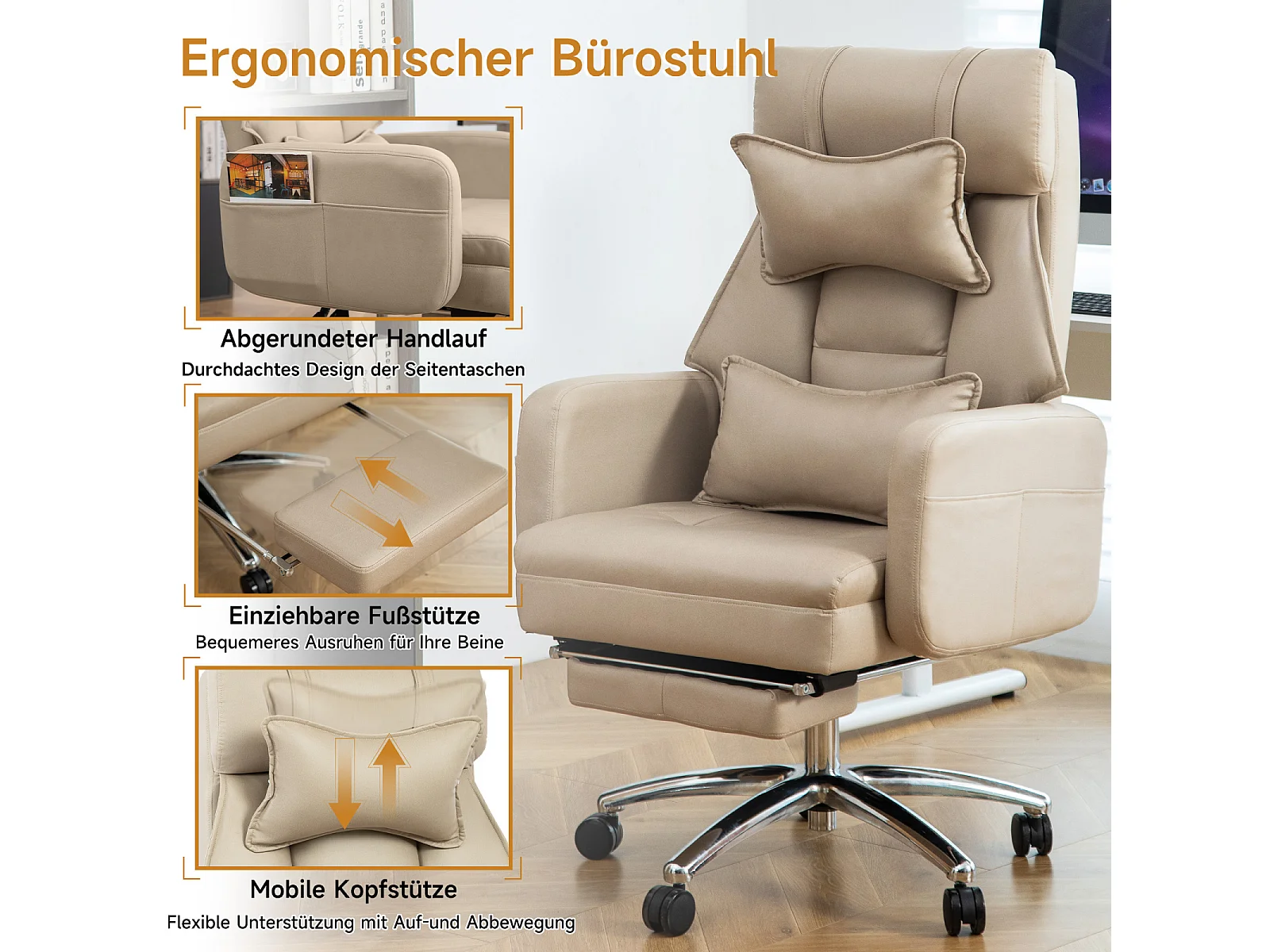 Fauteuil de bureau direction - avec soutien lombaire et appui-tête - inclinaison à 155° - beige