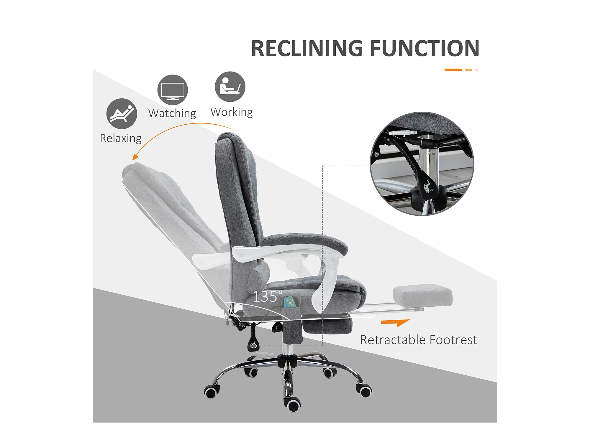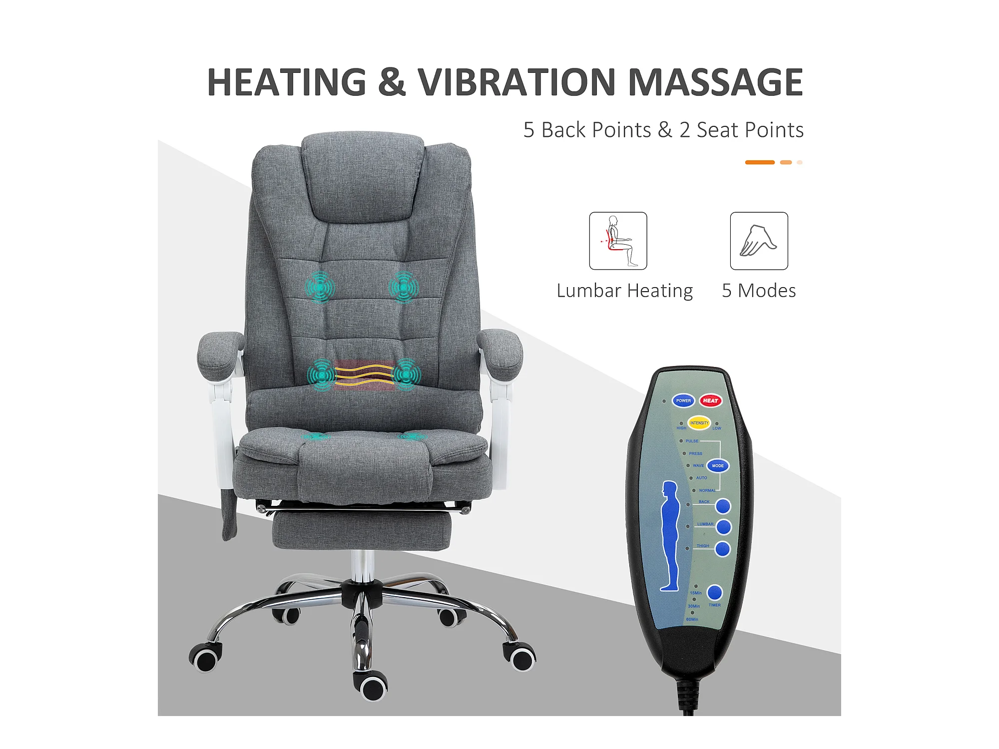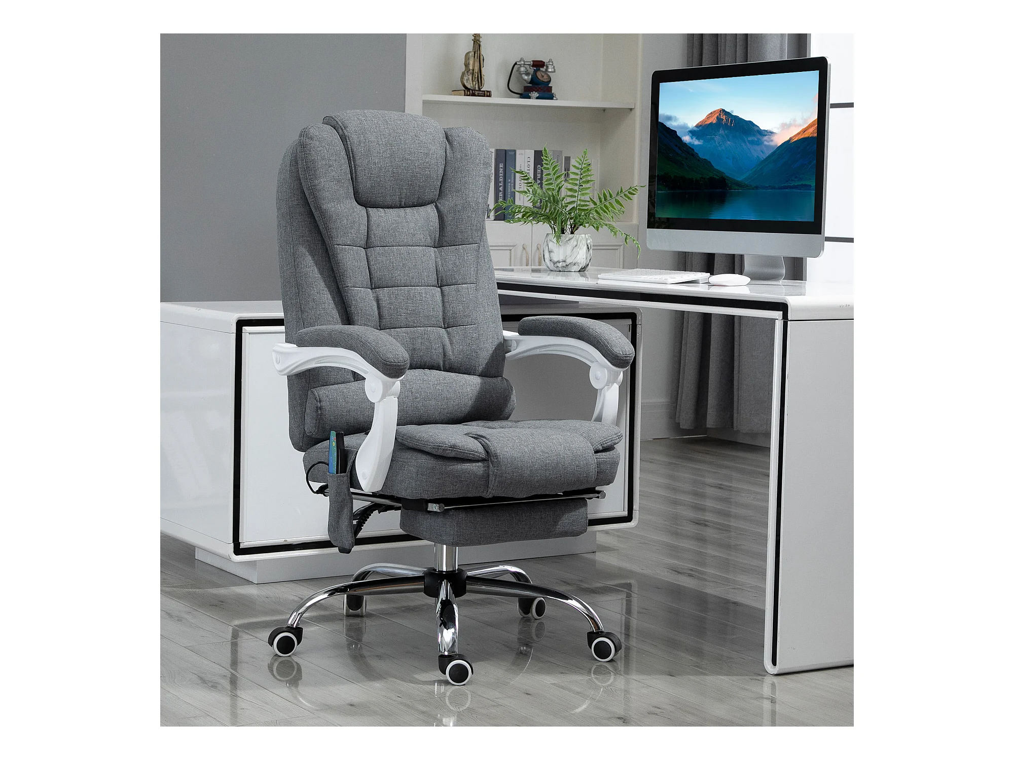 Fauteuil de bureau direction massant chauffant hauteur réglable dossier inclinable tissu gris