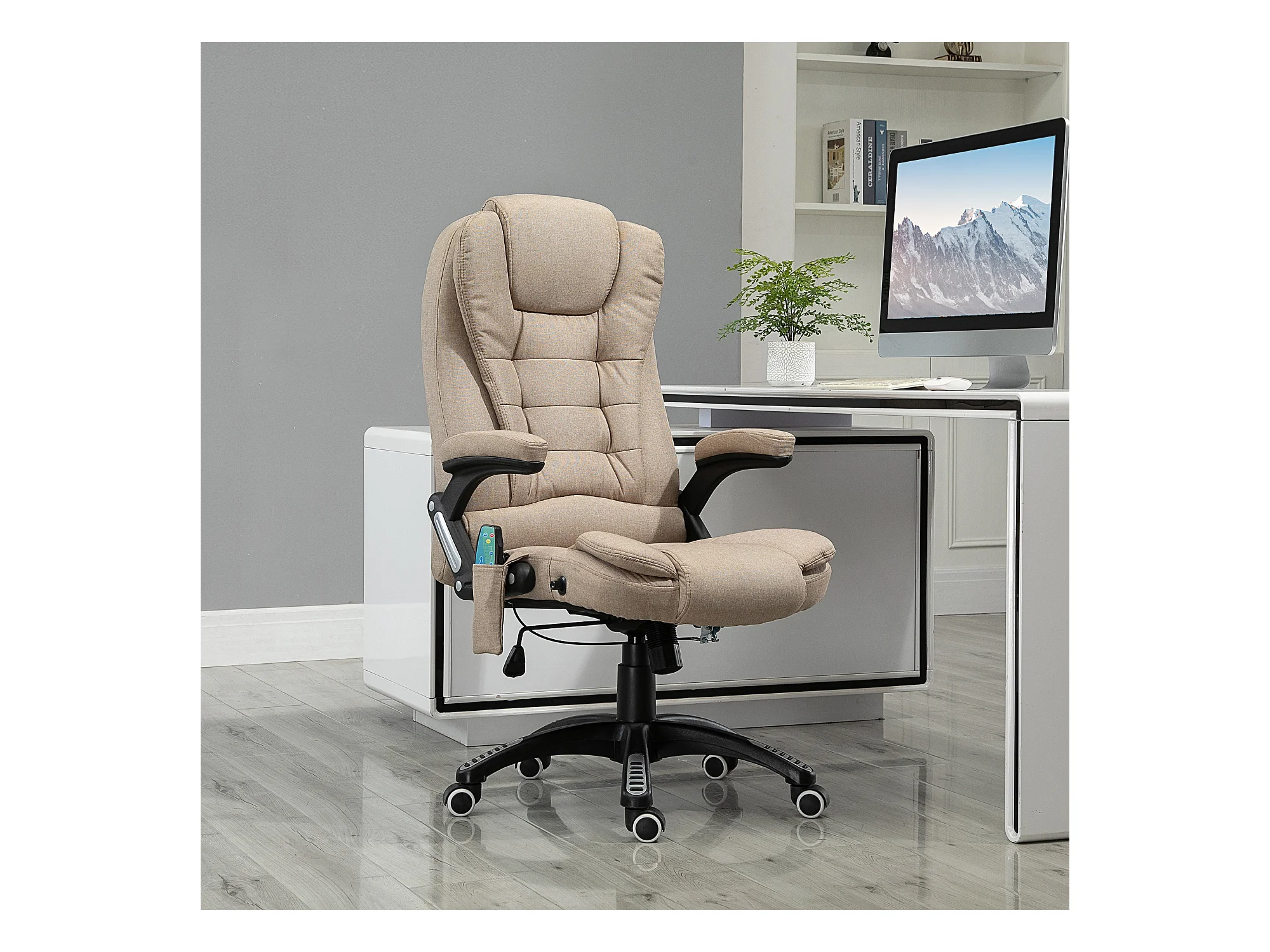 Fauteuil de bureau direction massant chauffant hauteur réglable dossier inclinable toile de lin beige