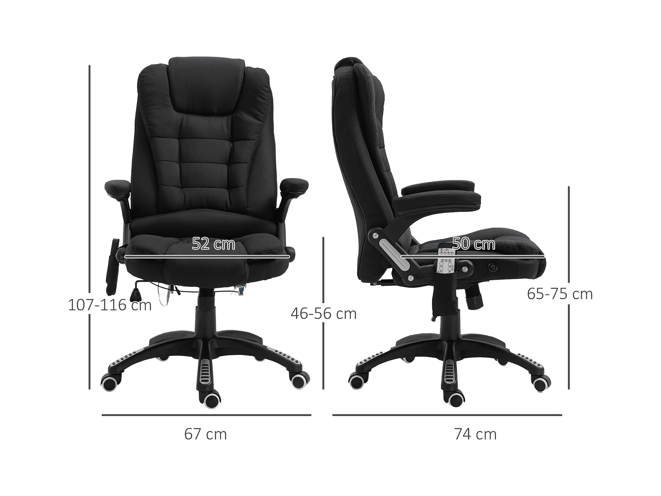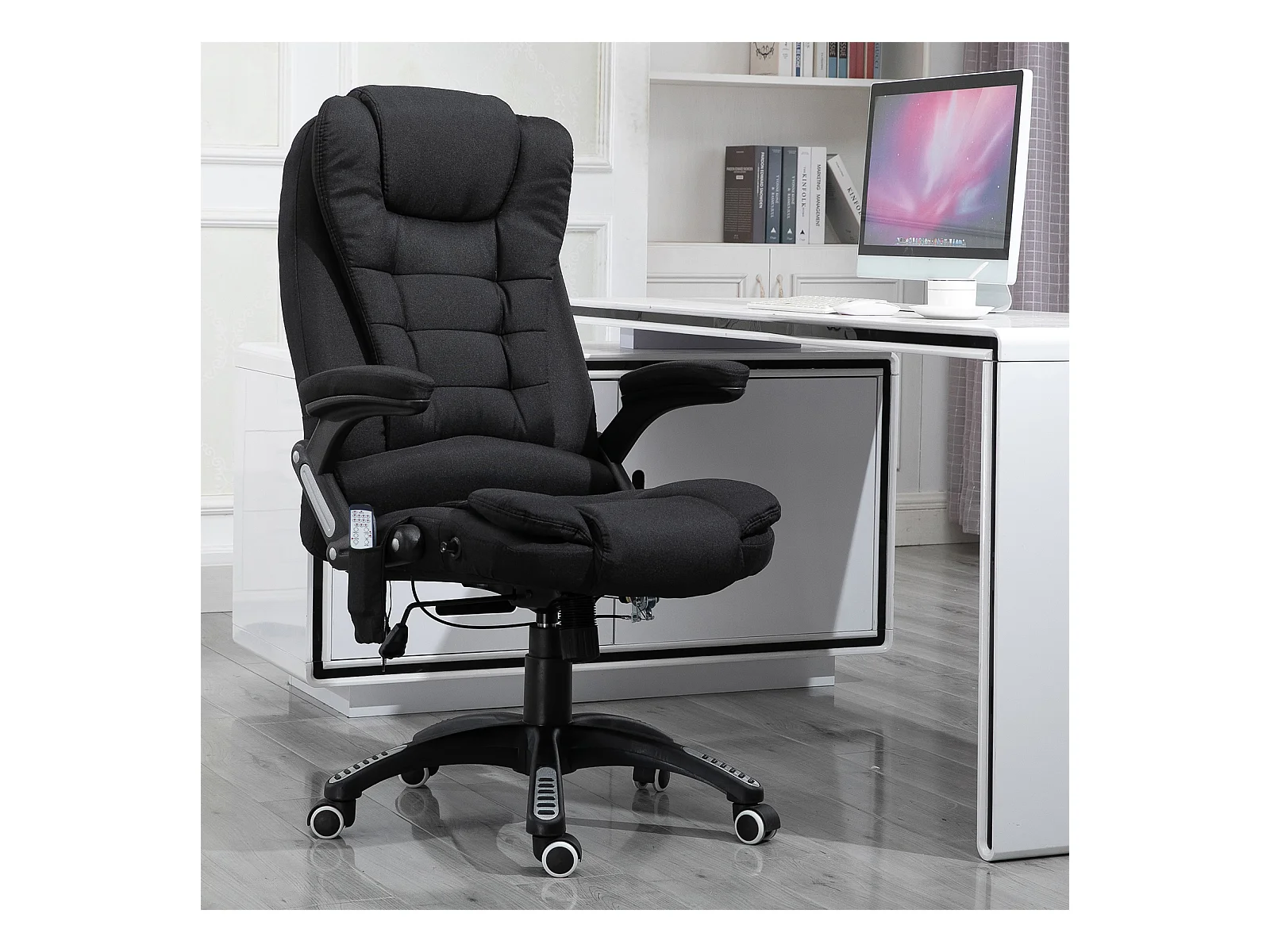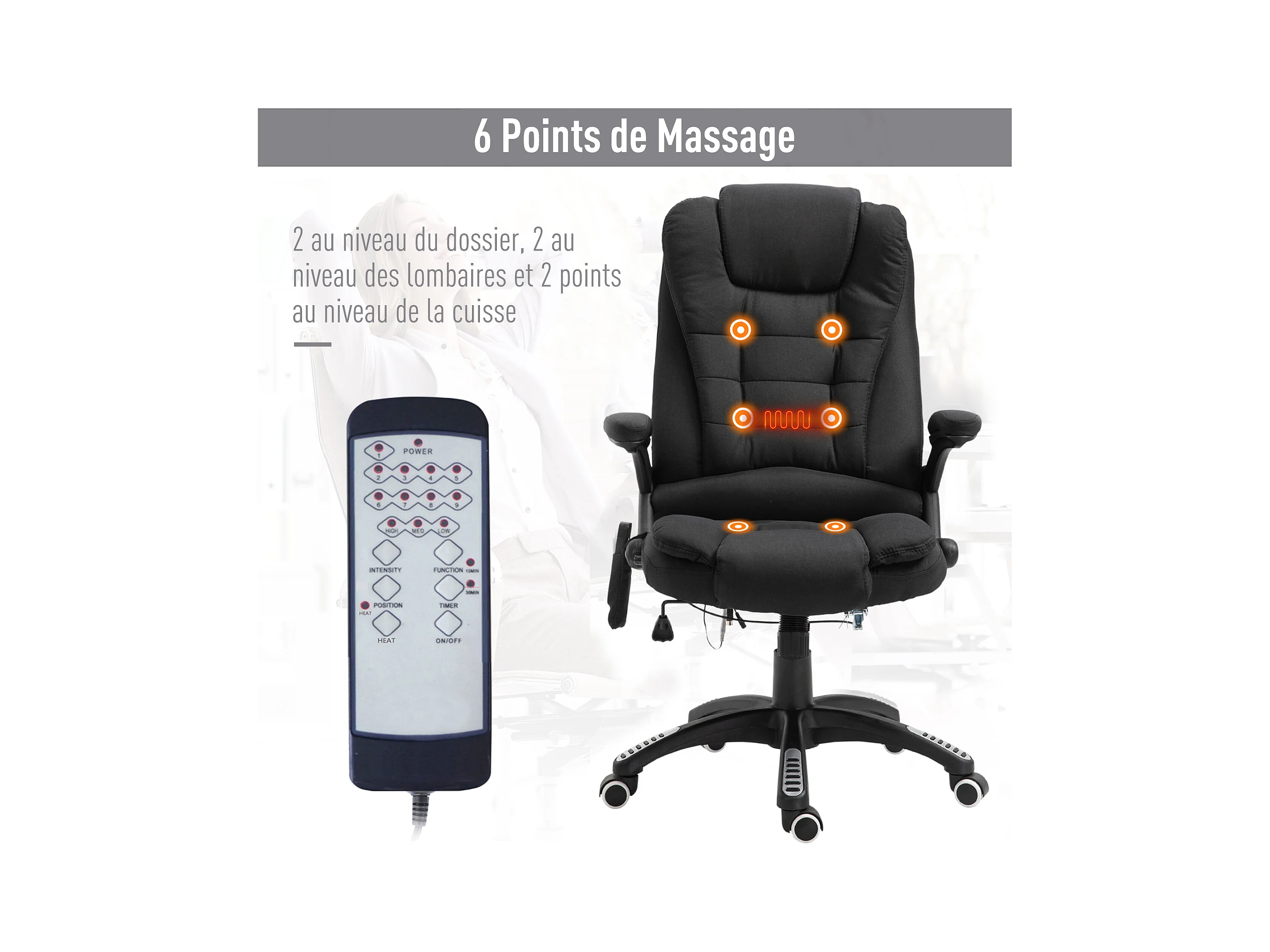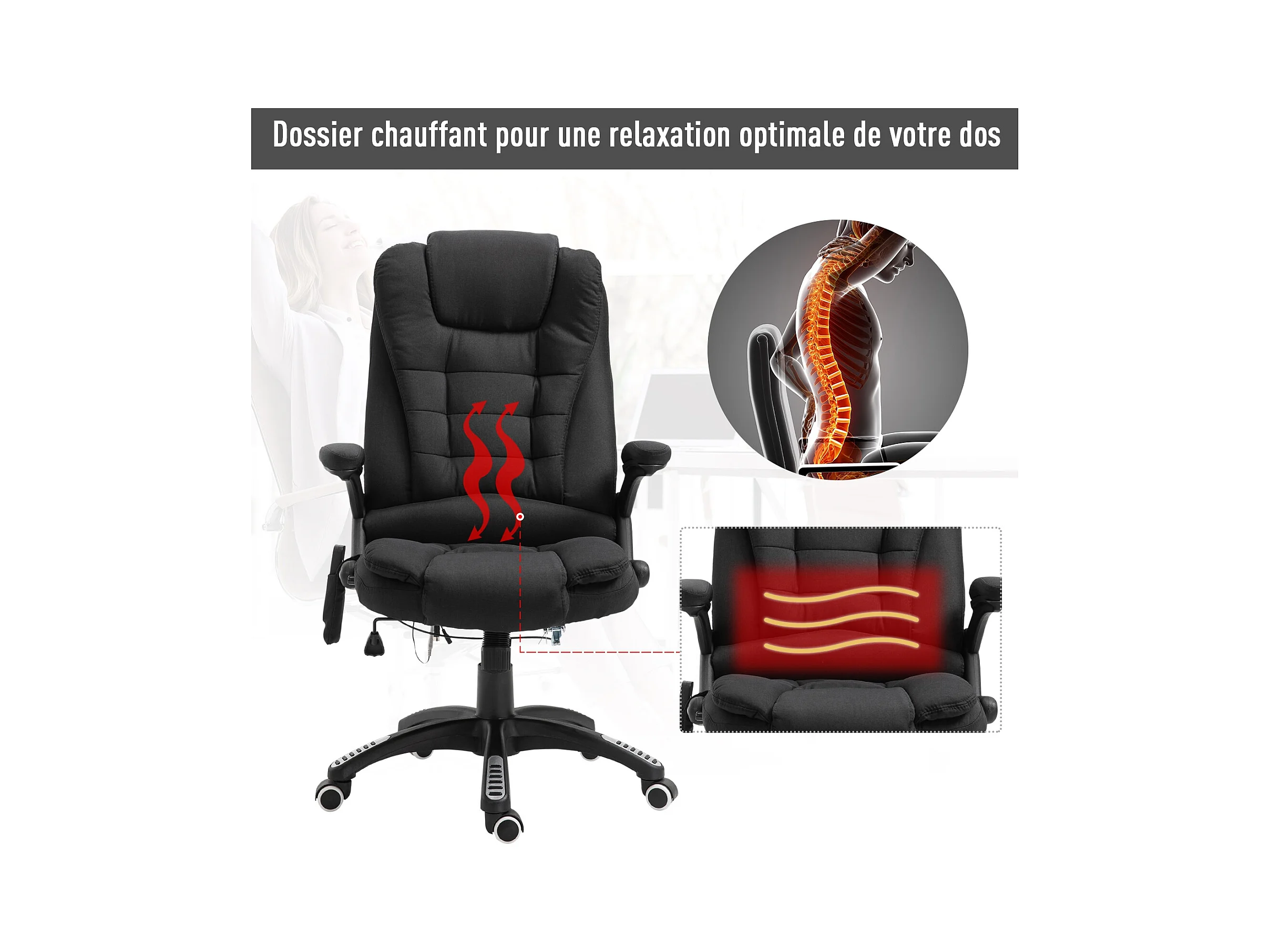 Fauteuil de bureau direction massant chauffant hauteur réglable dossier inclinable toile de lin noir