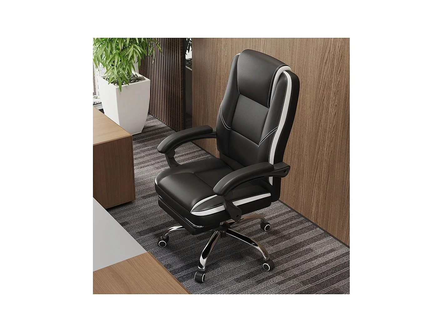 Fauteuil de bureau en simili avec repose pieds "Maissa" - Blanc/Noir