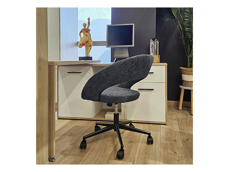 Fauteuil de bureau en tissu bouclette gris avec piètement noir - MARTY