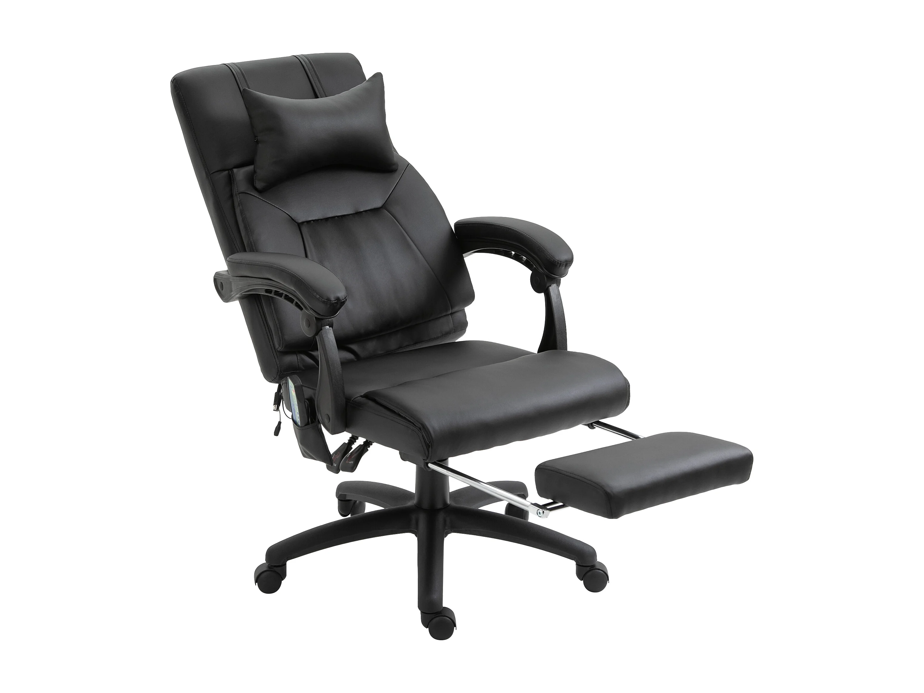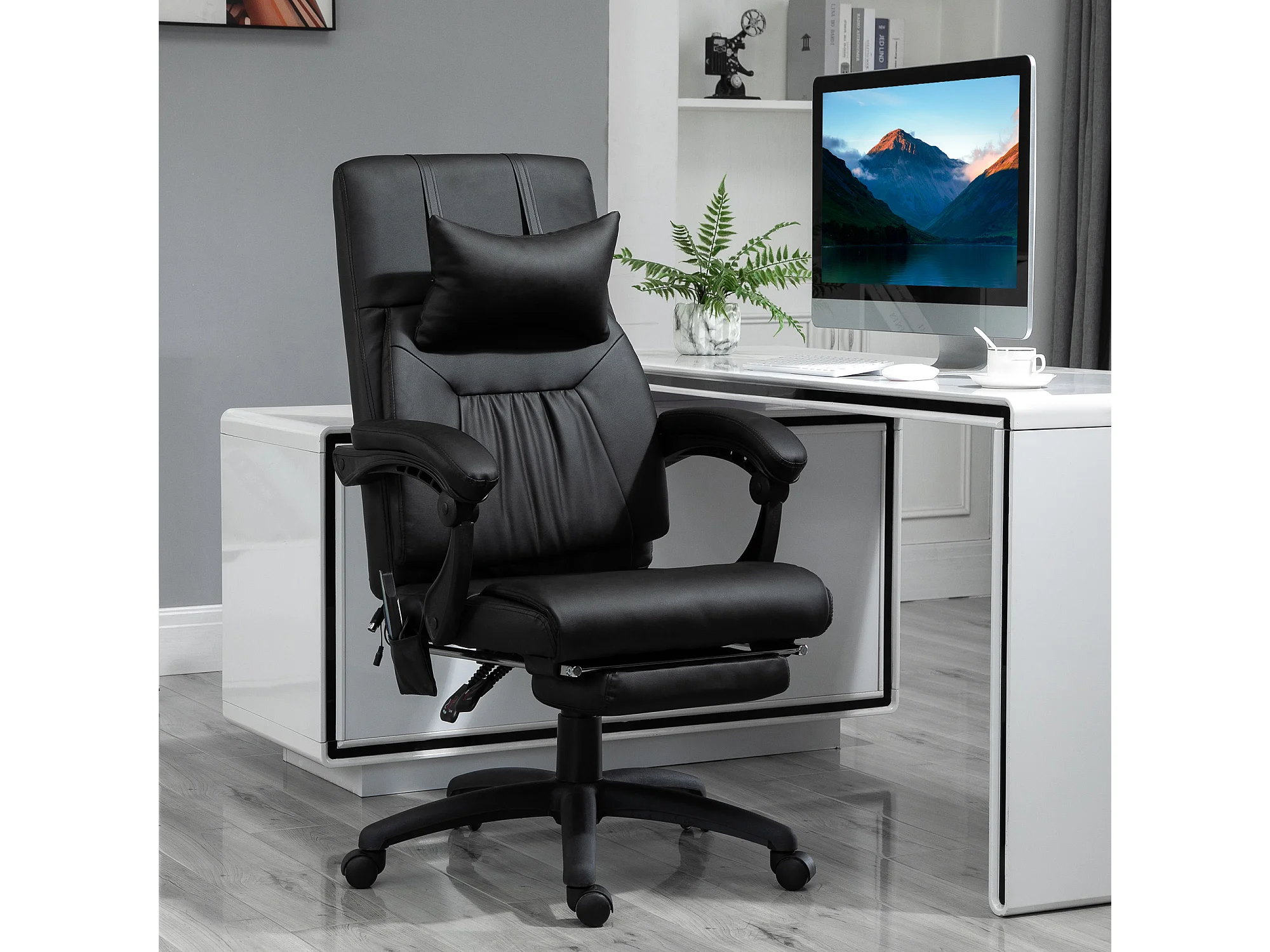 Fauteuil de bureau ergonomique avec massage, fonction chauffante, repose-pieds, PVC, Noir (68x79x104-112 cm)