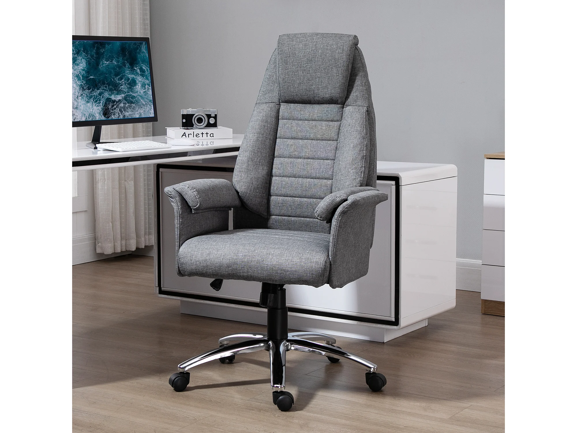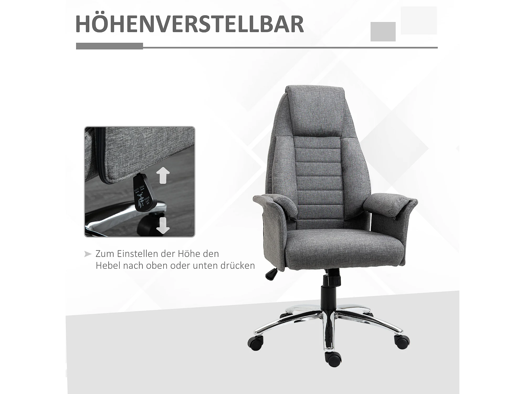 Fauteuil de bureau ergonomique hauteur réglable, design rétro, métal et tissu gris (68x69x126cm)