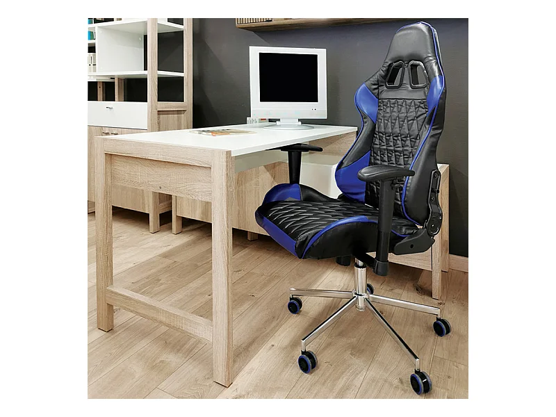 Fauteuil de bureau gaming noir et bleu dossier inclinable - GAME OVER