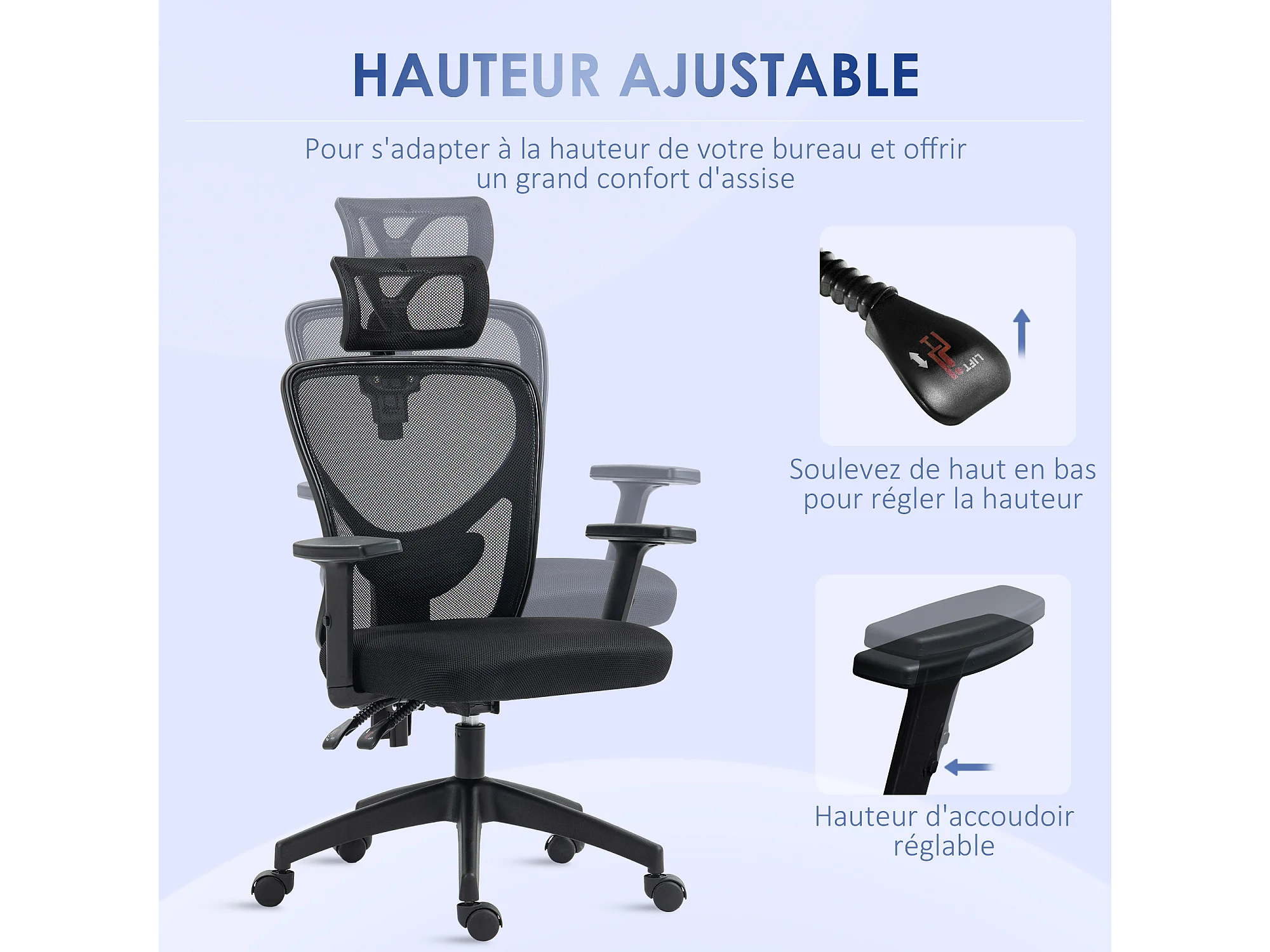 Fauteuil de bureau manager grand confort réglable dossier ergonomique inclinable pivotant tissu maille noir