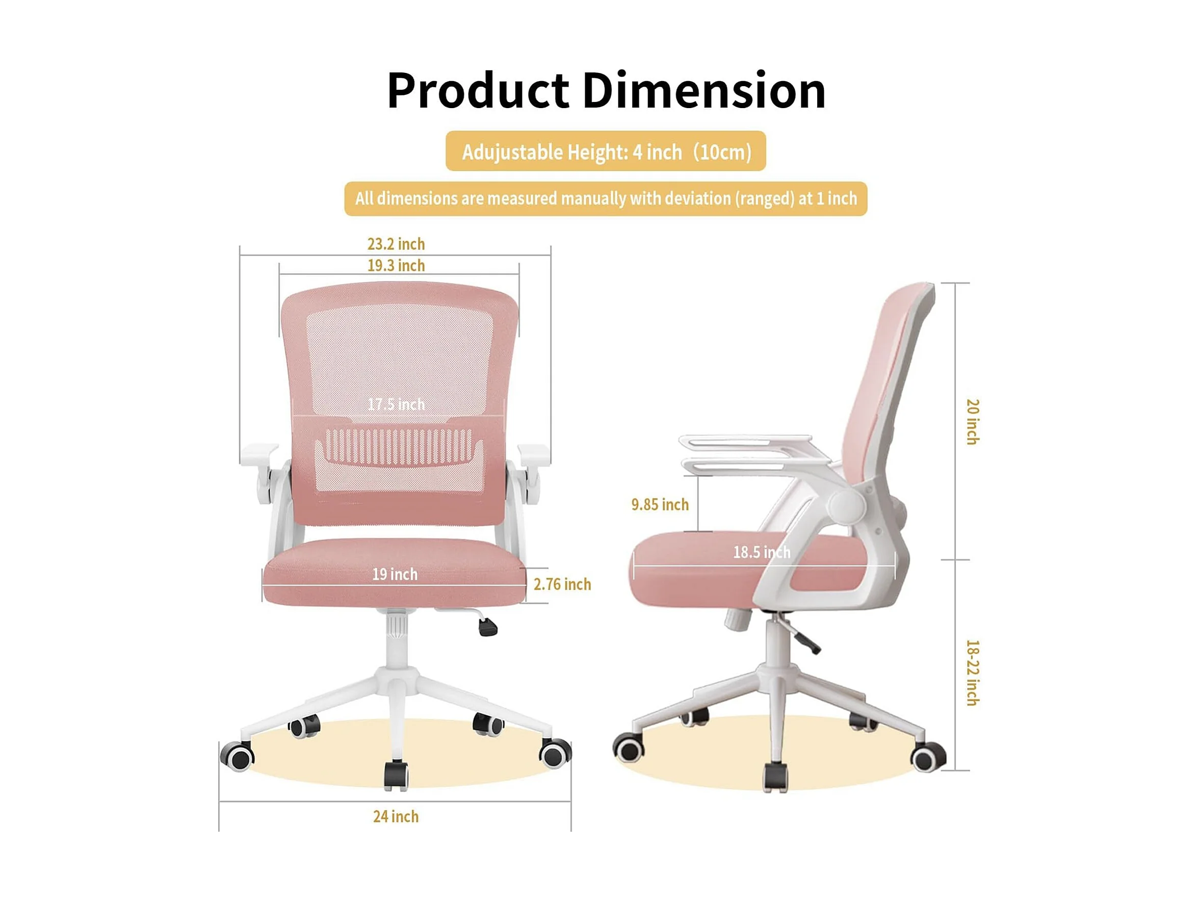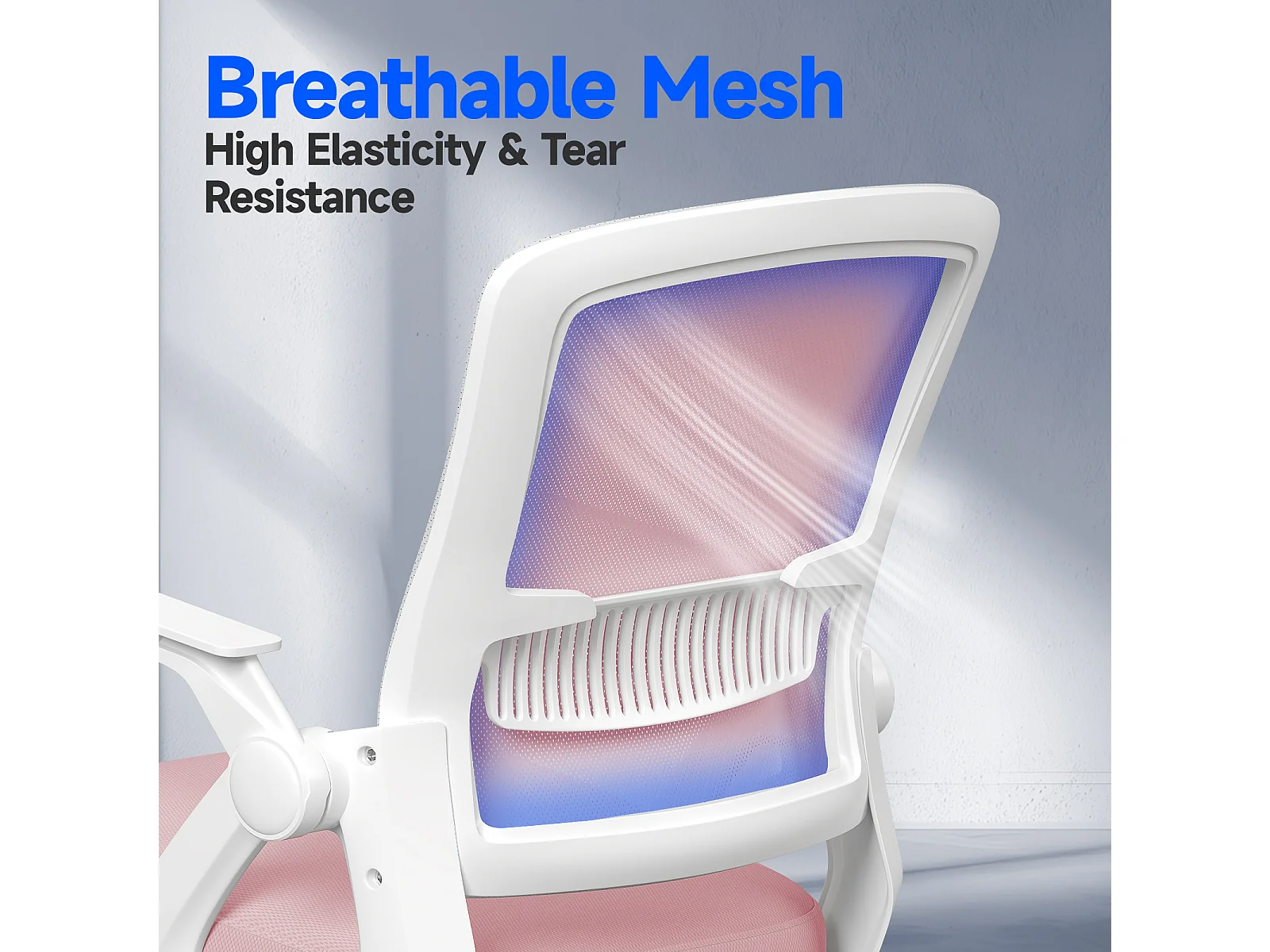Fauteuil de bureau pivotant avec accoudoirs relevables à 90° et soutien lombaire, pour la maison ou le bureau