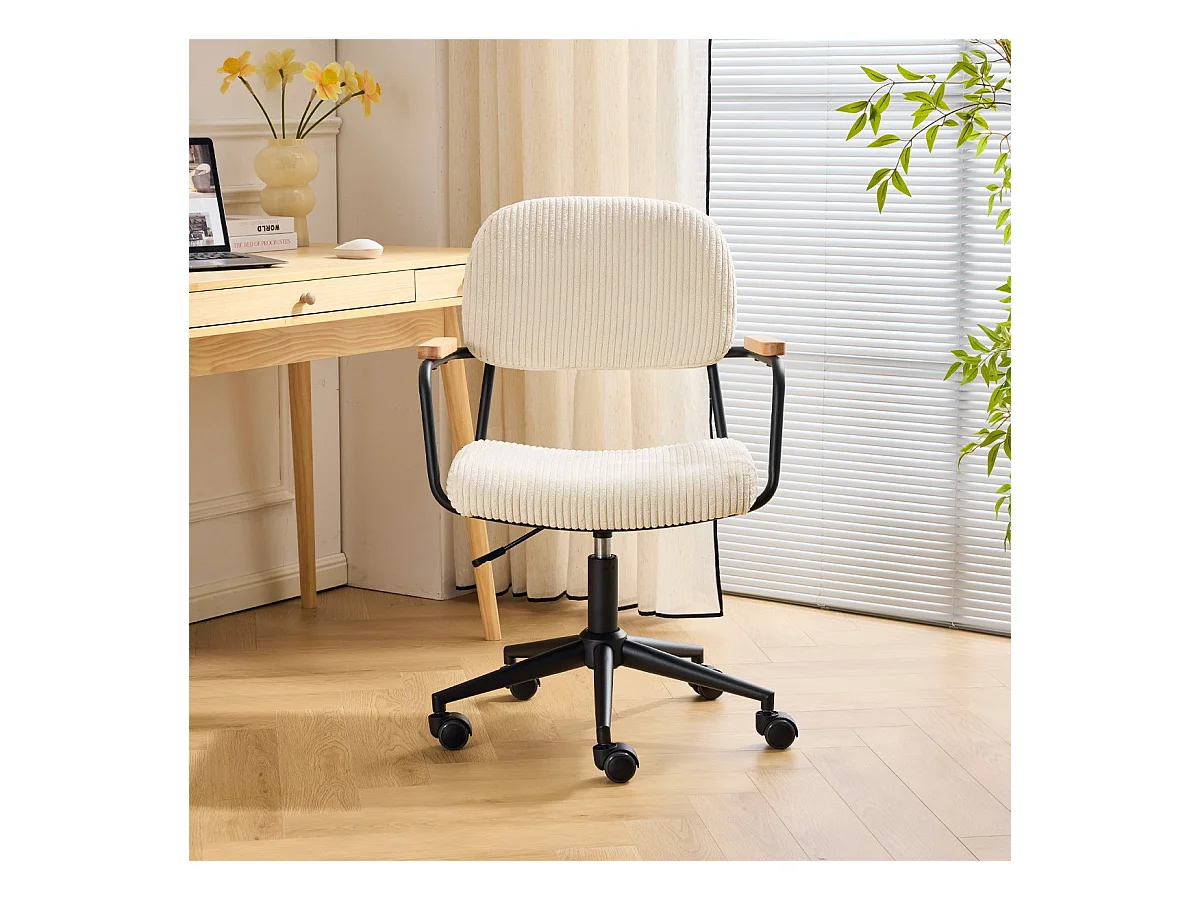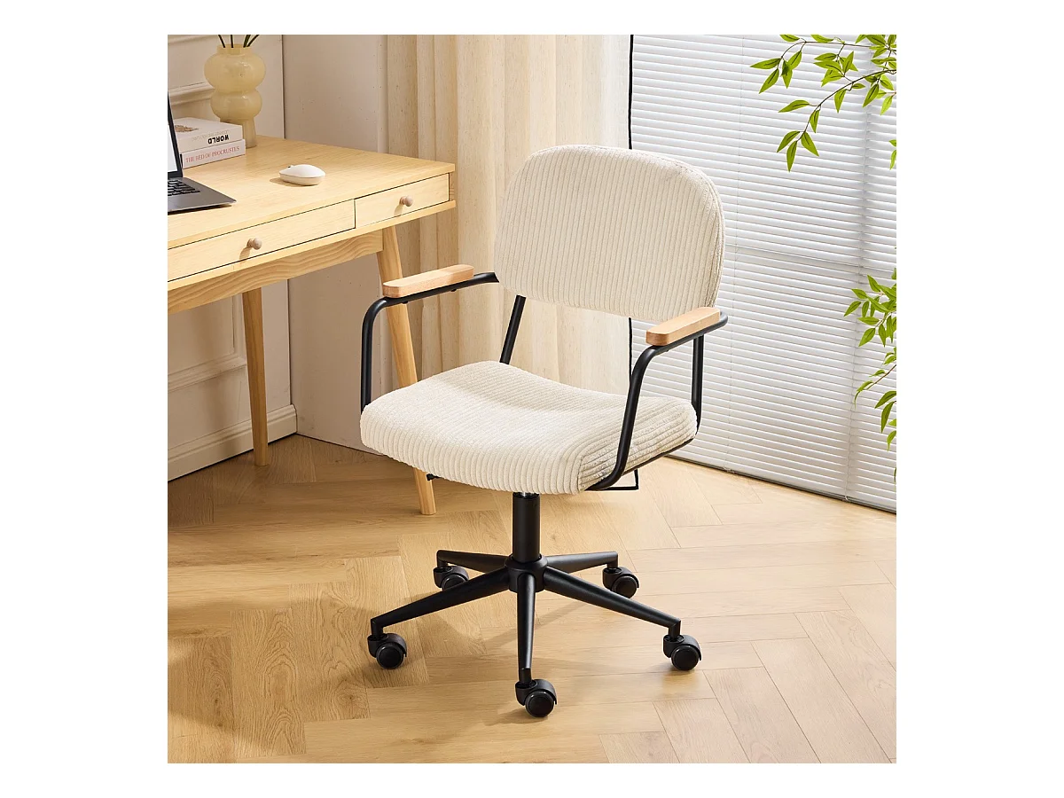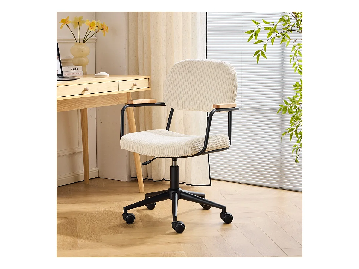 Fauteuil de bureau pivotant et réglable en hauteur en velours côtelé beige - Gianni