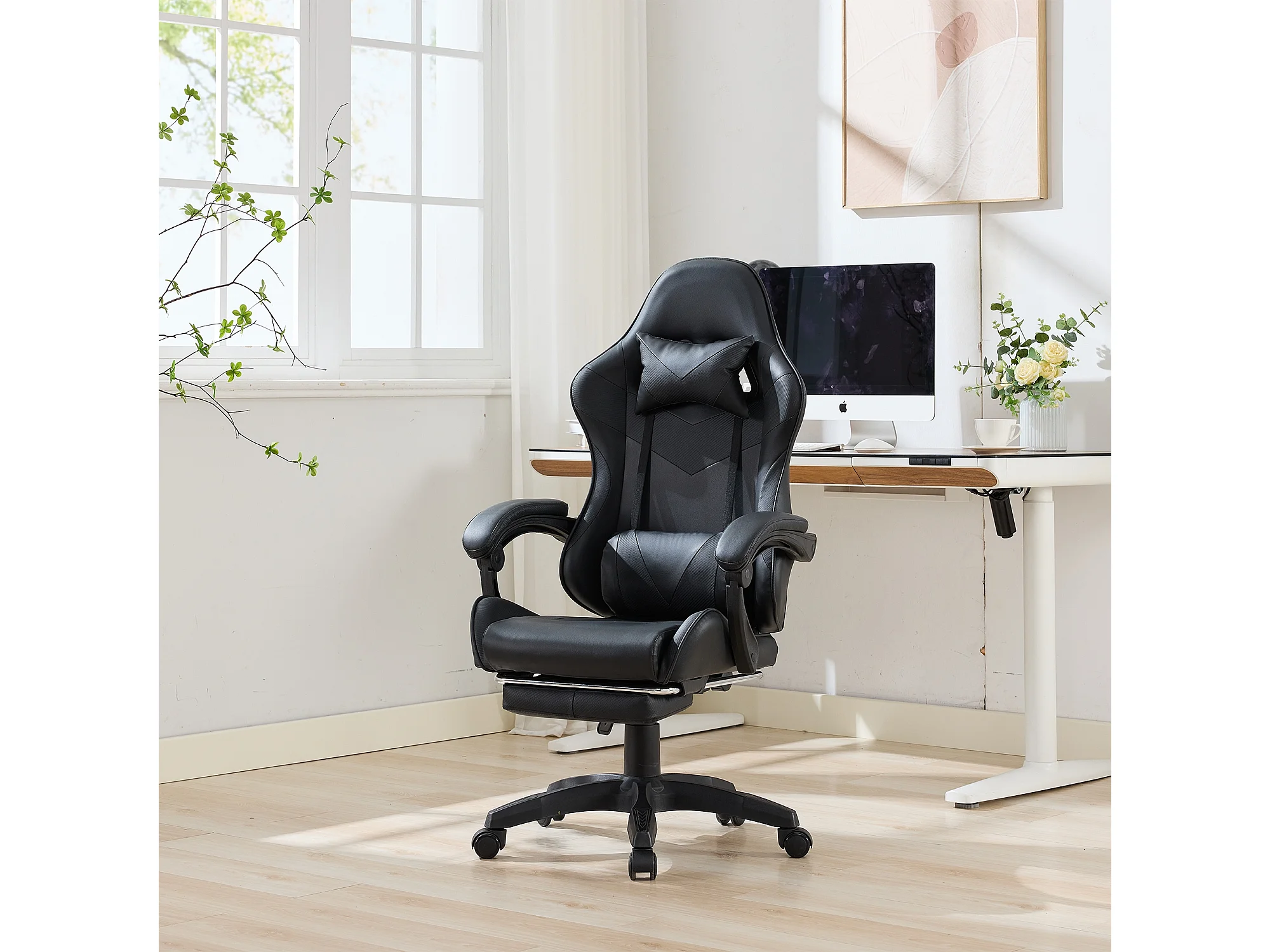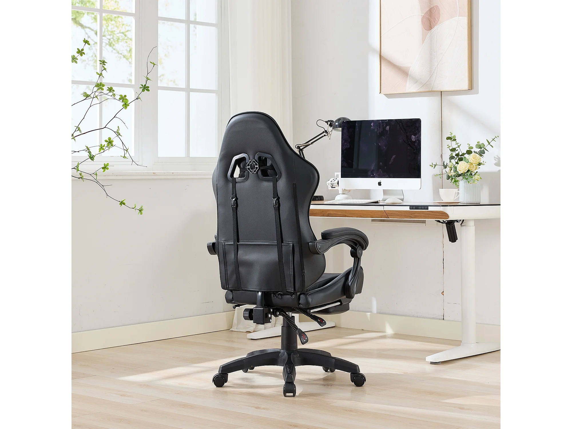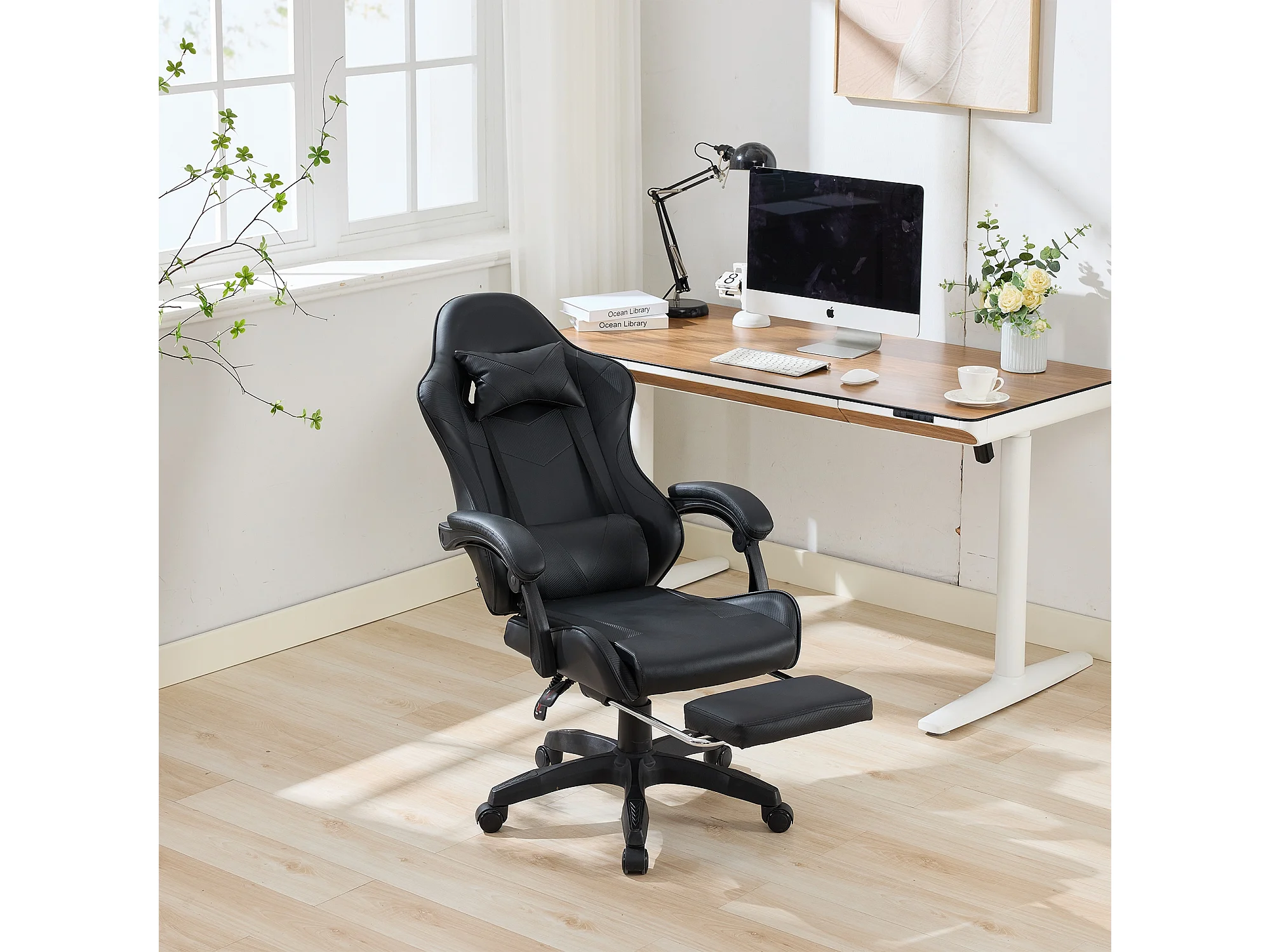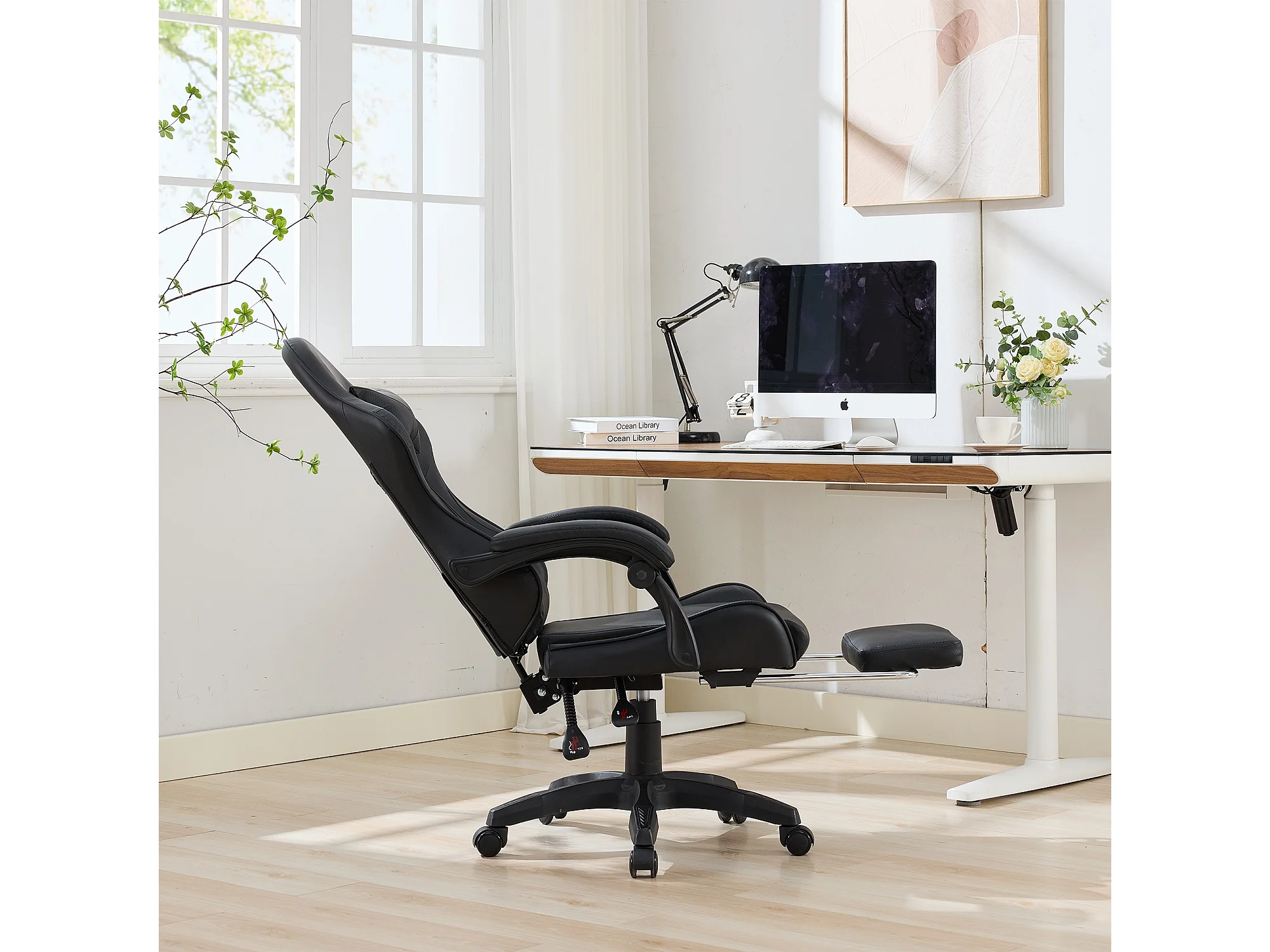 Fauteuil de bureau pivotant Massant en similicuir - Réglable en hauteur -Noir