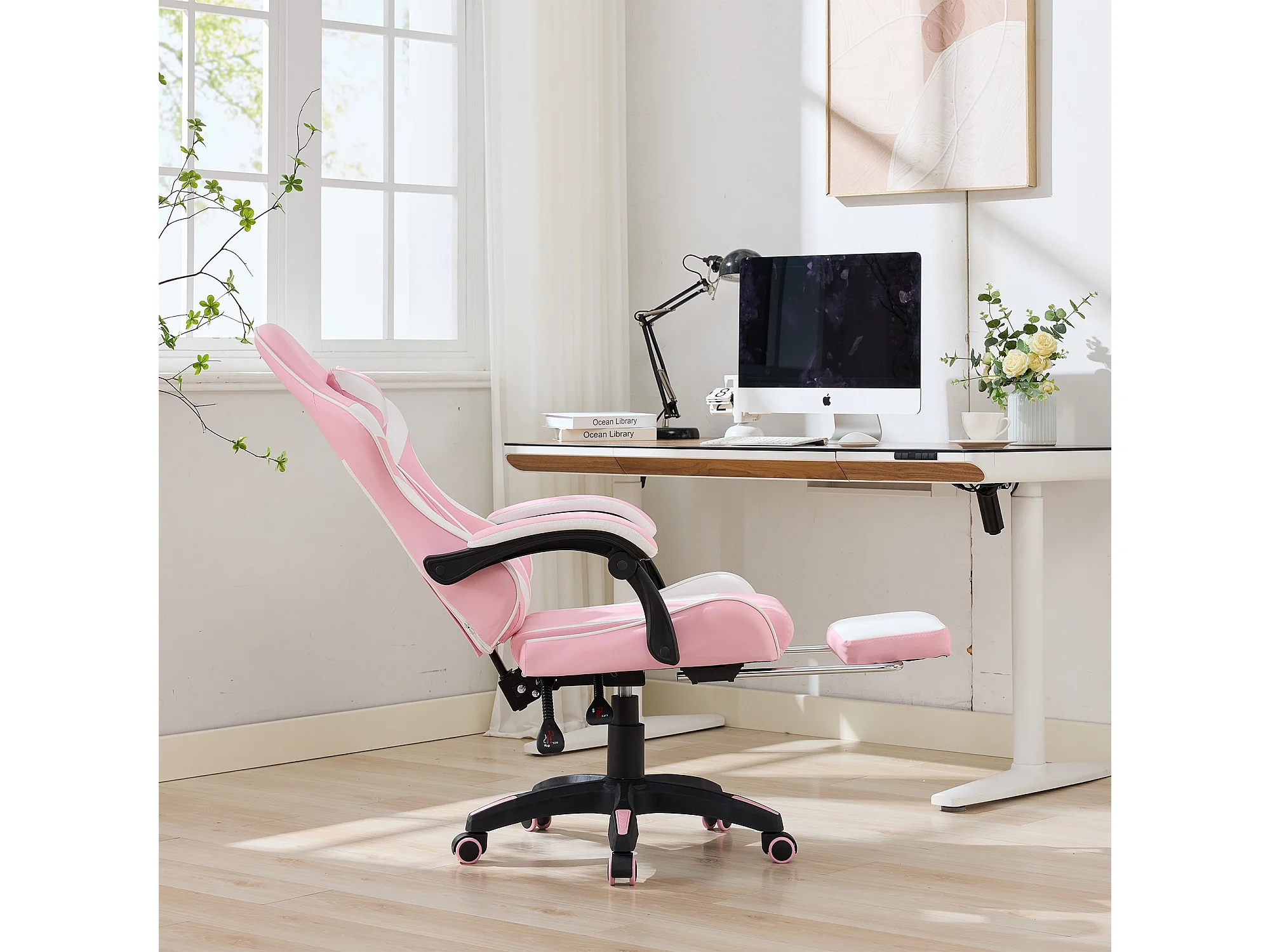 Fauteuil de bureau pivotant Massant en similicuir - Réglable en hauteur - Rose et blanc